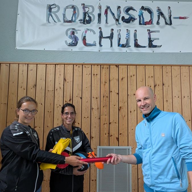 An der Robinson-Schule fiel im September 2025 der Startschuss für eine neue KiLa-AG in Kooperation mit der SG DJK Hattersheim 1966. Auf den Bildern zum Auftakt sind AG-Leiterin Kathrin Roßnagel, Konrektor Matthias Kilb sowie Vereinstrainerin Rebecca Kaufmann zu sehen. Die Kinder lernen hier nicht nur spielerisch leichtathletische Bewegungen, sondern verbessern auch Koordination, Beweglichkeit und entdecken die Freude an der Bewegung.