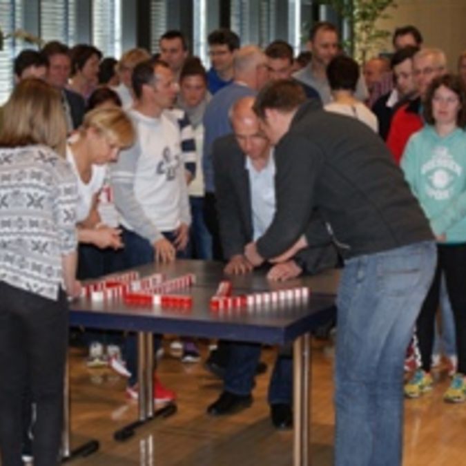 Mit den Ergebnispräsentationen zu den einzelnen Workshops endete der Kongress. Highlight war hier eine kurze Sprung-Choreografie der Teilnehmer des Workshops „Teamfähigkeit“, die sie zuvor im Praxisworkshop einstudiert hatten.