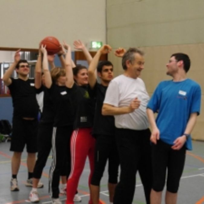 Anhand von Beweglichkeits-, Stabilisations- und Koordinationsübungen wurden Schwierigkeiten, Unterschiede und Gemeinsamkeiten von geistig behinderten zu nicht behinderten Sportlern deutlich. Im dritten Vortrag referierte Dominic Ullrich zum Thema Teamfähigkeit. Mit einer Arbeitsaufgabe integrierte Ullrich die Teilnehmer in das Thema und verdeutlichte damit, dass jede Person ein Baustein vom großen Ganzen ist. Eine Fortführung des Themas folgte im Praxisworkshop am Nachmittag. Hier zeigte Ullrich, wie Kooperations- und Teamfähigkeit im alltäglichen Übungs- oder Trainingsbetrieb gefördert und integriert werden kann.