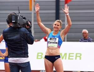 Carolin Schäfer: Sagen wir es einmal so: Sollte nur ein Medaillentipp für hessische Teilnehmer erlaubt sein, dürfte die Wahl auf die Siebenkämpferin aus Bad Wildungen fallen, die seit dem 1. Januar wieder für die LG Eintracht Frankfurt startet. Zu überragend war ihre Vorstellung beim Meeting in Götzis, wo sich die 25-Jährige Ende Mai auf überragende 6.836 Punkte verbesserte. Weltweit besser war - im selben Wettkampf - nur die Belgierin Nafissatou Thiam (7.013 Punkte). Vier Wochen nach der absoluten Weltklasseleistung von Götzis legte Carolin Schäfer in Ratingen 6.667 Punkte nach. Wieder Weltklasse. Deshalb bleiben keine Fragen offen, über wen die Medaillen in London (auch) führen bzw. wer mittendrin ist im Kampf um Gold, Silber und Bronze: Carolin Schäfer.