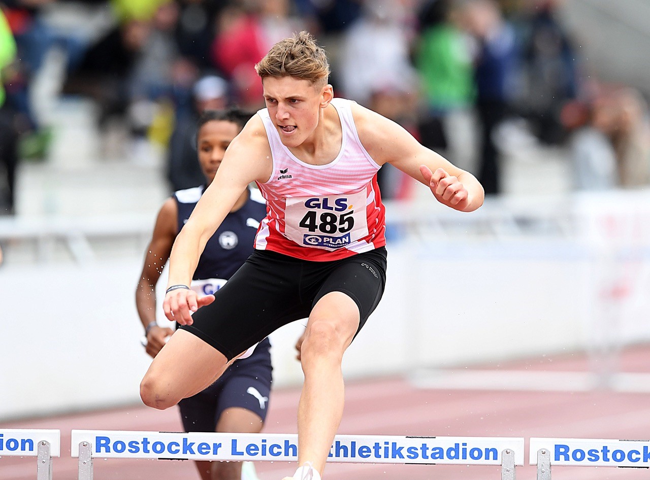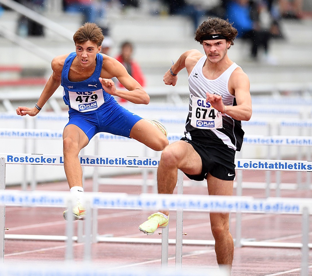 400 Meter Hürden: Der Druck war sicherlich da, denn Finn Rode (TV Wächtersbach) war mit hervorragenden 54,93 Sekunden als Führender der Meldeliste an die Ostsee gereist. Die Pflicht im Vorlauf löste der Langhürdler aus dem Main-Kinzig-Kreis ganz souverän mit einem Sieg in starken 55,05 Sekunden. Im Finale packte Rode dann noch ein Pfund drauf. Mit der neuen Bestzeit von 54,05 Sekunden untermauerte der Wächtersbacher eindrucksvoll seine Vormachtstellung und ließ der von Sebastian Schuch (Dresdner SC) in 54,50 Sekunden angeführten Konkurrenz keine Chance.