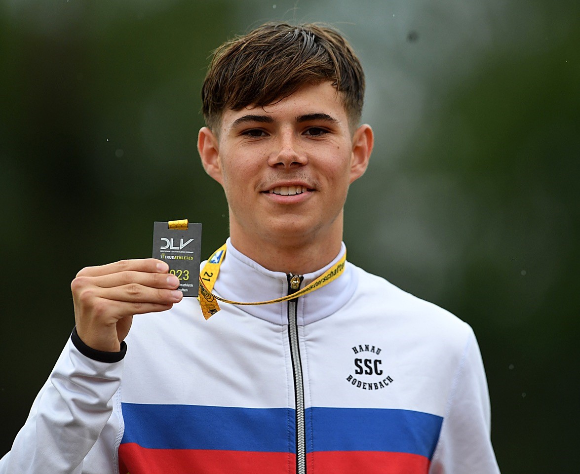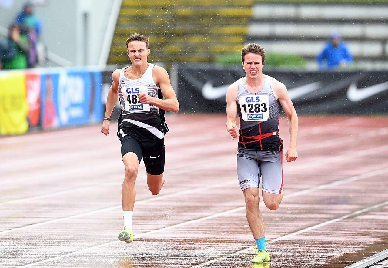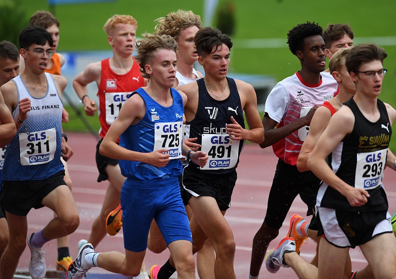 1.500 Meter: Es war eine wahre Regenschlacht. Schon als die Athleten ins Stadion geführt wurden, hatte der Himmel seine Schleusen geöffnet. Im ersten Rennen war auch Tristan Kaufhold mit dabei. Der Jahresbeste (3:50,92 min.) vom SSC Hanau-Rodenbach lief lange mitten im Feld mit und tat auf den letzten 300 Metern nicht mehr als nötig. Das sparte Kräfte und reichte, um als Vorlaufsieger mit eher lockeren 4:11,73 Minuten sicher ins Finale zu kommen. Etwas schneller war das zweite Rennen gestrickt, in dem sich Ayoub Jaafar (Eintracht Frankfurt) als Dritter mit 4:08,76 Minuten ebenfalls das Endlauf-Ticket sicherte.