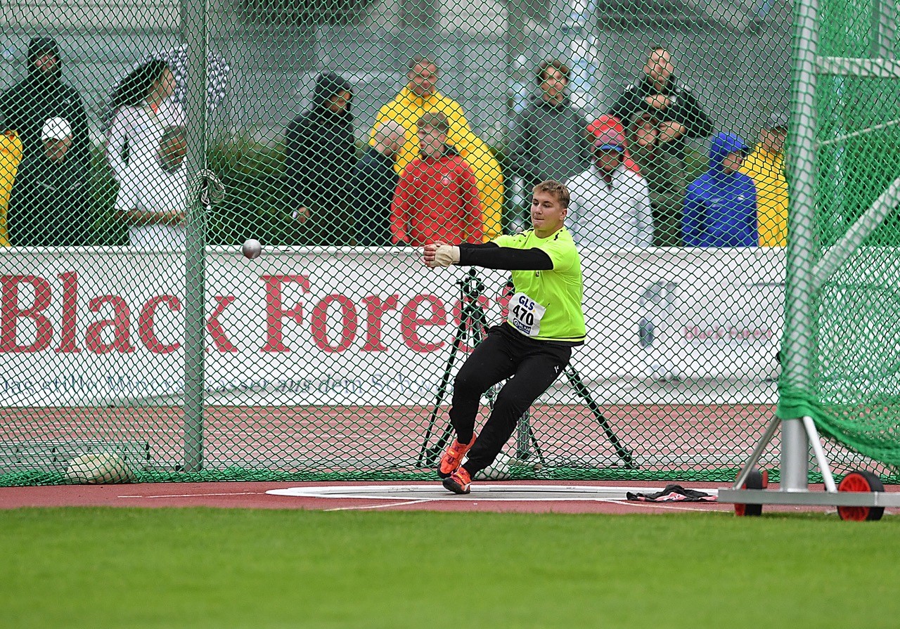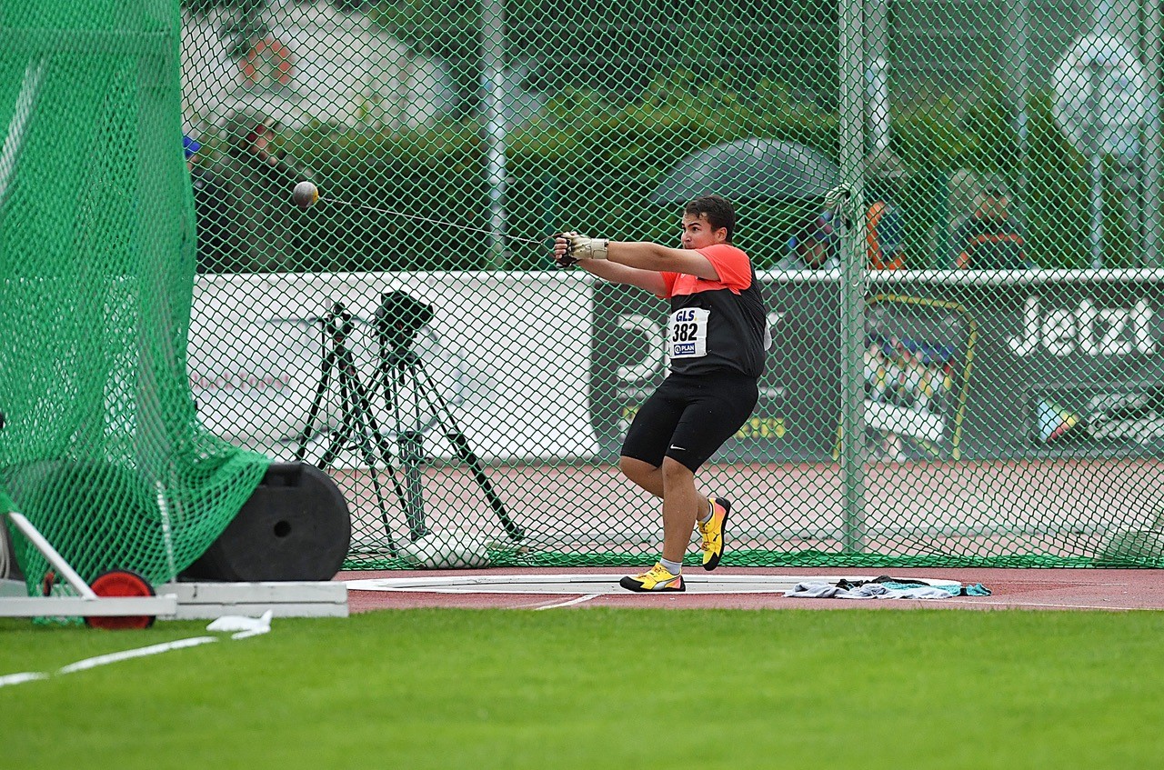 Hammerwerfen: Max Baier (TV Fränkisch-Crumbach) war beim Hammerwerfen der „Herr im Ring“. Mit starken 69,27 Metern brauchte der Techniker aus der kleinen Odenwald-Gemeinde keinen Gegner zu fürchten. Auch die beiden anderen gültigen Würfe (65,72 m bzw. 67,18 m) von Baier hätten zum DM-Titel gereicht. Auf dem zweiten Platz kam Andre Rommel (SC Berlin/64,11 m). Durch Tom Baumann (Eintracht Frankfurt/6. mit 59,08 m) hatten Hessen noch einen weiteren Werfer im Endkampf.