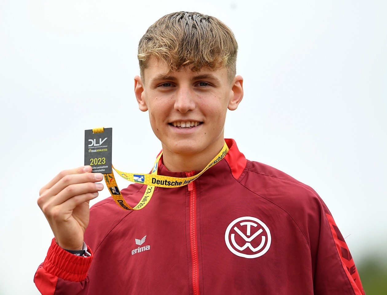 5.000 Meter Bahngehen: Mit lediglich fünf Starten war das Feld hier recht überschaubar. Lasse Rohrssen (VfL Altenstadt) ging mit einer Bestzeit von 26:34,47 Minuten aus dem April in das Rennen. Bereits nach den ersten Runden zeichnete sich ein schneller Wettkampf ab, so hielt Lasse sich viele Runden in der dreiköpfigen Verfolgergruppe hinter den ersten beiden Gehern auf, wobei die Verfolgergruppe konstant 2:00 Minuten pro Runde gingen. Einen Kilometer vor Schluss ereilte Lasse das Pech, dass er aufgrund dreier Disqualifikationsanträge durch die Gehrichter für 30 Sekunden in die „Penalty Zone“ musste, um eine Zeitstrafe abzuwarten. Die aussichtsreiche Position, um nach einer Bronzemedaille zu greifen schien verloren. Doch die 30 Sekunden Zeitstrafe wirkten Wunder: Lasse kam wie ausgewechselt aus der Penalty Zone hervor und schoss direkt seinen Kontrahenten hinterher. Davon profitierend, dass der zwischenzeitliche weit abgesetzte Zweitplatzierte schwächelte, konnte dieser schnell eingeholt werden, sodass Lasse eine Runde vor Schluss auf Position 4 war. Durch eine fulminante Schlussrunde konnte Lasse den zu diesem Zeitpunkt Drittplatzierten, der sich noch zu wehren versuchte, 10 Meter vor dem Ziel überholen und in neuer Bestzeit von 25:01,67 Minuten die Bronzemedaille und seinen damit größten sportlichen Erfolg sichern. Den letzten Kilometer absolvierte der Altenstädter in unter 4:20 Minuten, da staunten übrigens selbst seine Trainer nicht schlecht.