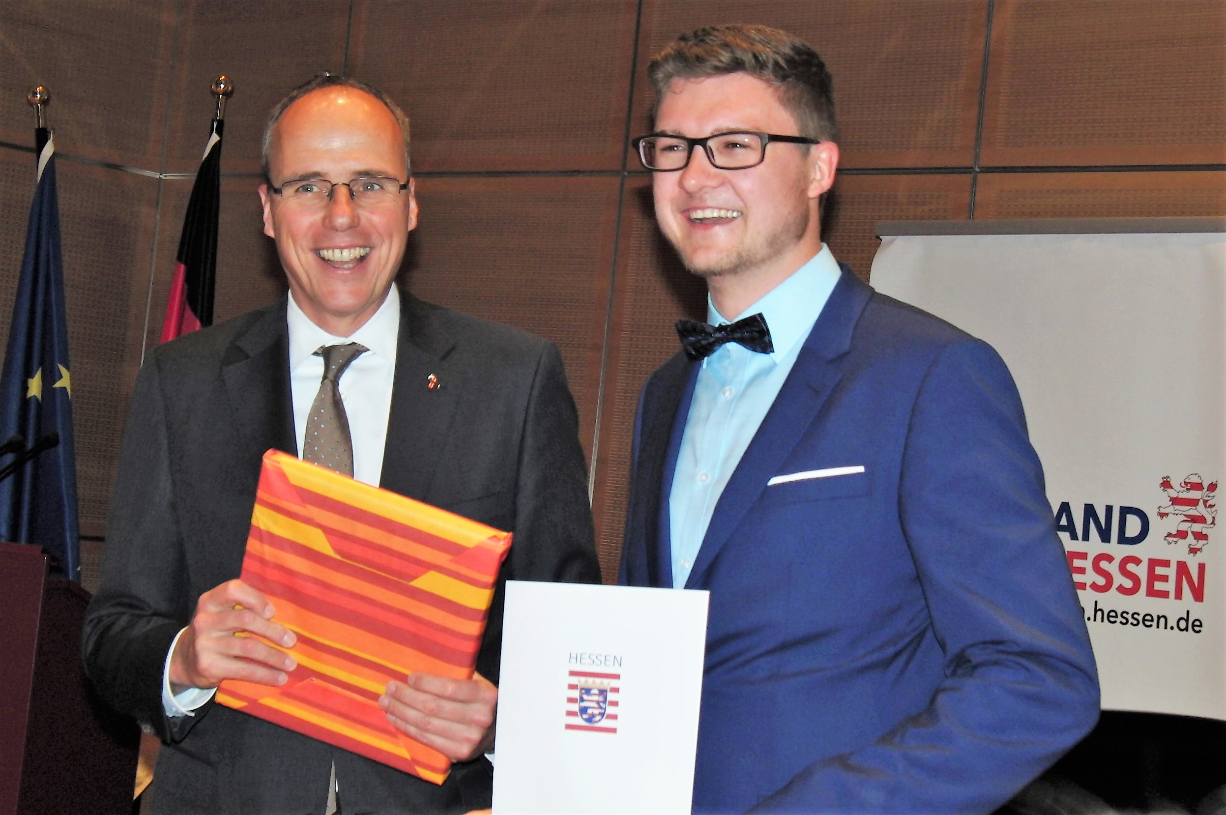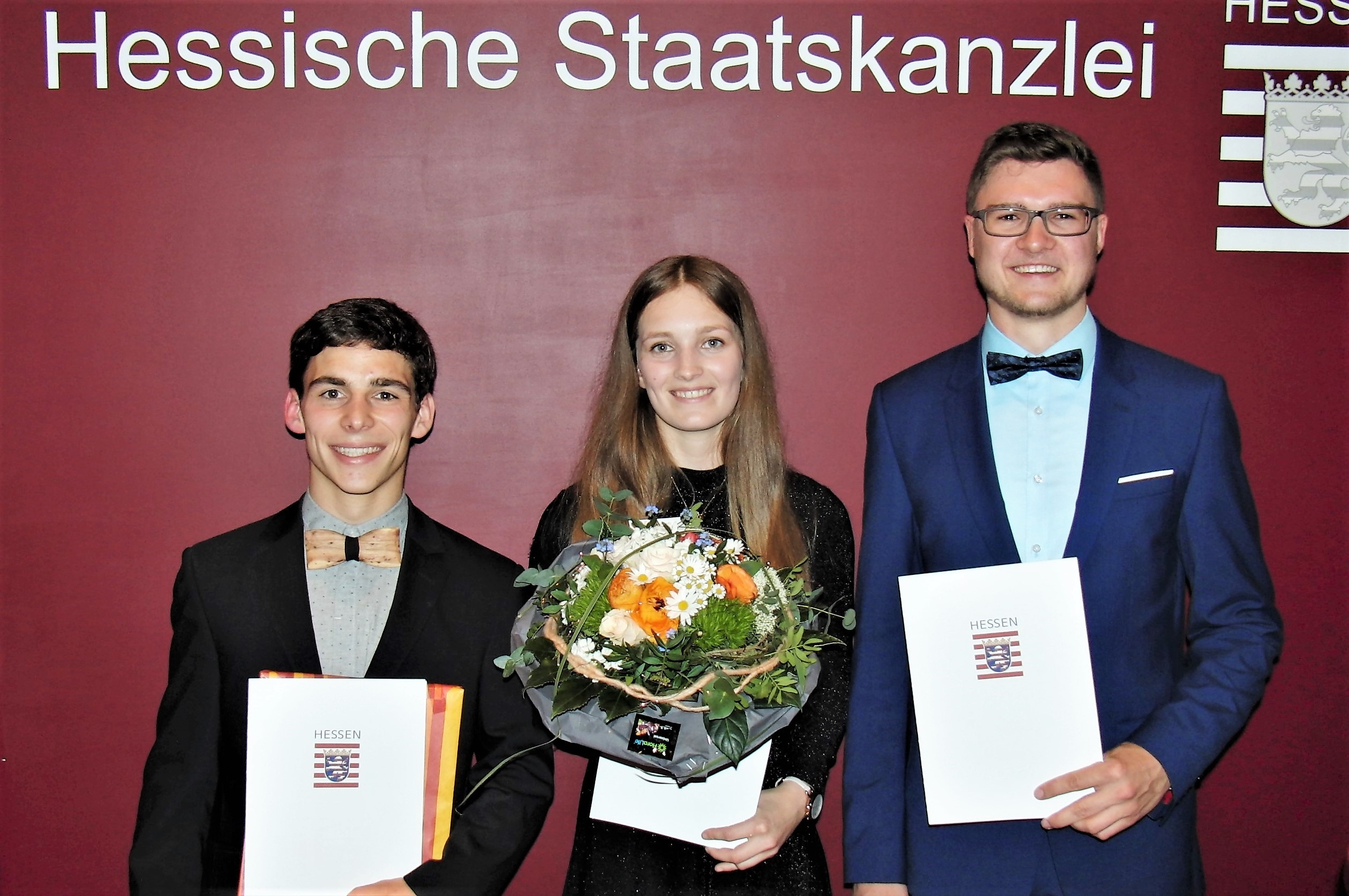 Der Hessische Innen- und Sportminister Peter Beuth (CDU) hat in Wiesbaden an fünf junge Sportler das Dr. Horst-Schmidt-Jugendsport-Stipendium vergeben. Das mit jeweils 2.000 Euro dotierte Stipendium geht an junge Ehrenamtliche, die sich im Studium oder in der Ausbildung befinden und sich in ihrem Sportverein für andere einsetzen. Unter den fünf Stipendiaten, die mit ihrem außergewöhnlichen ehrenamtlichen Engagement um den Sport in Hessen und damit in unserer Gesellschaft verdient gemacht haben, befanden sich drei Leichtathletinnen und Leichtathleten: Sandra Ellinghausen (LG Langen), Cedric Guthier (LG Odenwald) und Tobias Stang (MT Melsungen).