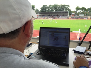In Wattenscheid ist bei dem Elektroingenieur die Konzentration bei jedem Lauf gefragt. Schließlich geht es um die Zeitmessung, genauer gesagt die Zielbildauswertung. 1.400 Bilder pro Sekunde werden bei den Sprints übereinandergelegt - je höher das Tempo, desto mehr Bilder werden benötigt. Bis auf die Tausendstel ist damit die Zeit messbar. „Wir schauen mit drei Augenpaaren auf die Auswertung, um die Genauigkeit zu gewährleisten.“ Bereits am Freitagmittag sind Ditthardt und seine Mitstreiter angereist, haben mehrere Stunden aufgebaut und schließlich die Anlage überprüft. Um Fehler zu vermeiden, wie im Mai in Flieden. Dort war die Anlage nicht richtig eingestellt, und es kamen zu schnelle Zeiten heraus, die letztlich aus den Bestenlisten gestrichen werden mussten.
