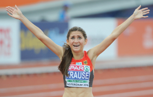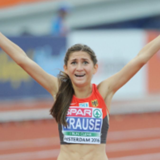 Doppelter hessischer Jubel am Abschlusstag der 23. Leichtathletik-Europameisterschaften in Amsterdam. Gesa Krause von der LG Eintracht Frankfurt wurde ihrer Favoritenrolle über 3.000 Meter Hindernis gerecht und siegte in neuer persönlicher Bestleistung von 9:18,85 Minuten. Der Abstand auf die zweitplatzierte Albanerin Luiza Gega (9:28,52) betrug fast zehn Sekunden. Mit ihrer Leistung untermauerte Gesa Krause, die bei Wolfgang Heinig trainiert, ihre Position in der Weltklasse und verfehlte den deutschen Rekord von Antje Möldner-Schmidt (9:18,54/2009) nur um knapp drei Zehntel.<ENDE/> Der Sieg in Amsterdam ist zudem Gesa Krauses erster internationaler Einzeltitel bei den Erwachsenen; zuvor hatte sie die europäischen Titel in den Altersklassen U21 (2011) und U23 (2013) gewonnen und bei der WM 2015 überraschend den dritten Rang belegt.