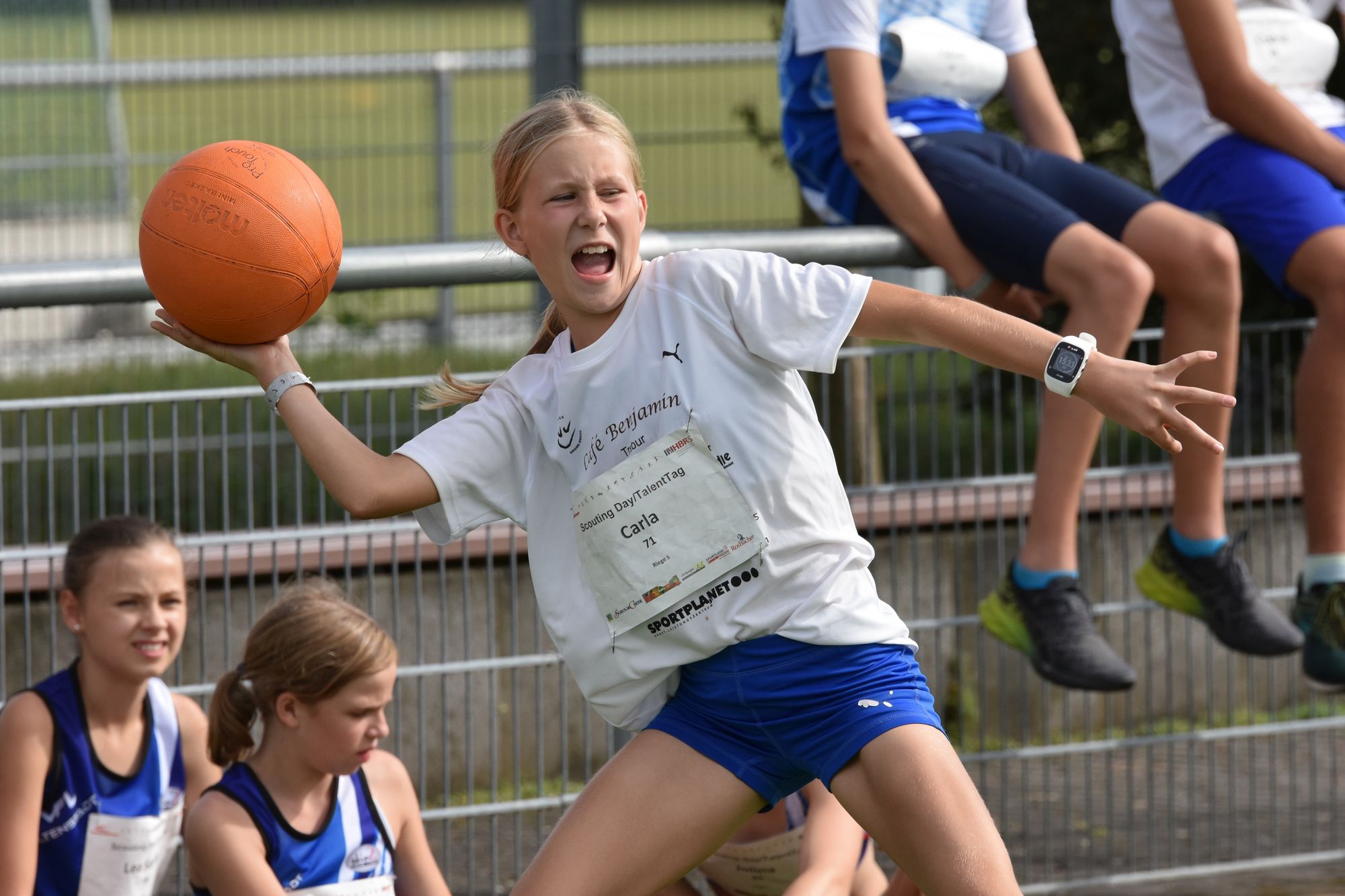 Für ein abwechslungsreiches Programm sorgten die erfahrenen Verbandstrainer mit einem attraktiven Übungskatalog aus den Bereichen Laufen, Springen und Werfen. Dabei gefiel den Talenten der 40-Meter-Sprint mit Lichtschrankenmessung (20m fliegend) ebenso gut, wie der Koordinationsparcours und das Basketballspiel. Das Highlight des Tages war jedoch ohne Zweifel der inklusive Staffelwettbewerb, bei dem alle Teilnehmer verschiedene Aufgaben erfüllen mussten. „Das hat so viel Spaß gemacht. Am liebsten hätte ich das gleich nochmal gemacht“, freute sich die zwölfjährige Leylah. Finn (13 J.) hat gefallen, dass „es so viele verschiedene Sachen auf einmal gab. Am coolsten fand ich aber Basketball und den Parcours“. Beide wollen nächstes Jahr wieder mit dabei sein.