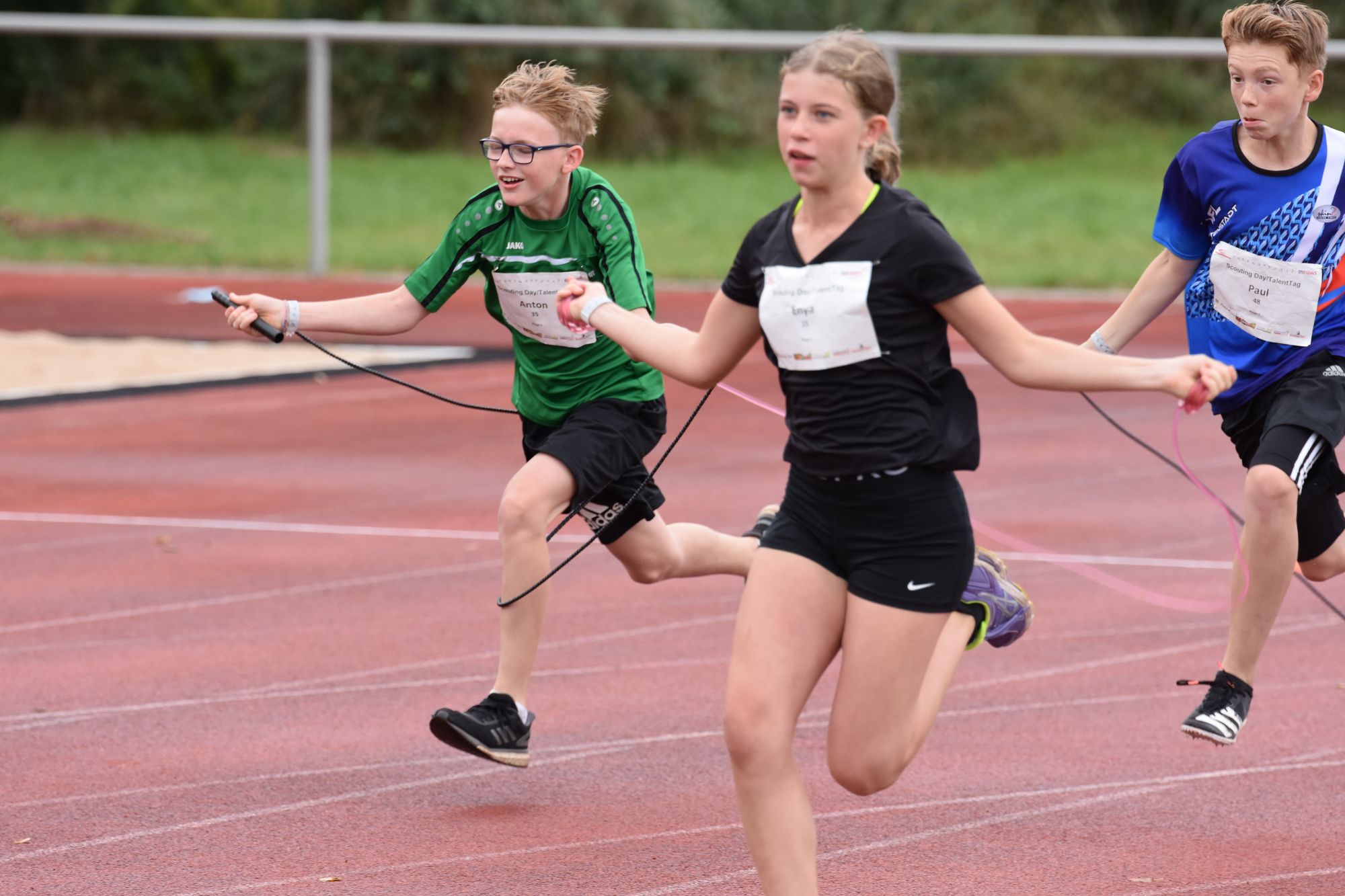 171 sportbegeisterte Kinder und Jugendliche im Alter von elf bis vierzehn Jahren, darunter auch ein Dutzend Kinder mit Handicap, waren dem Aufruf gefolgt und erlebten auf dem Leichtathletikgelände an der Hahnstraße einen Tag voller sportlicher Action. Spielerisch lernten die Jugendlichen unterschiedliche Bewegungsformen kennen und powerten sich einen Tag lang aus. Die Teilnehmer konnten dabei mehr über das eigene sportliche Talent herausfinden und sich mit anderen messen. Über die Leistungsbetrachtung hinaus wurde sich mit Aspekten der sozialen Interaktion und der Selbsteinschätzung beschäftigt.
