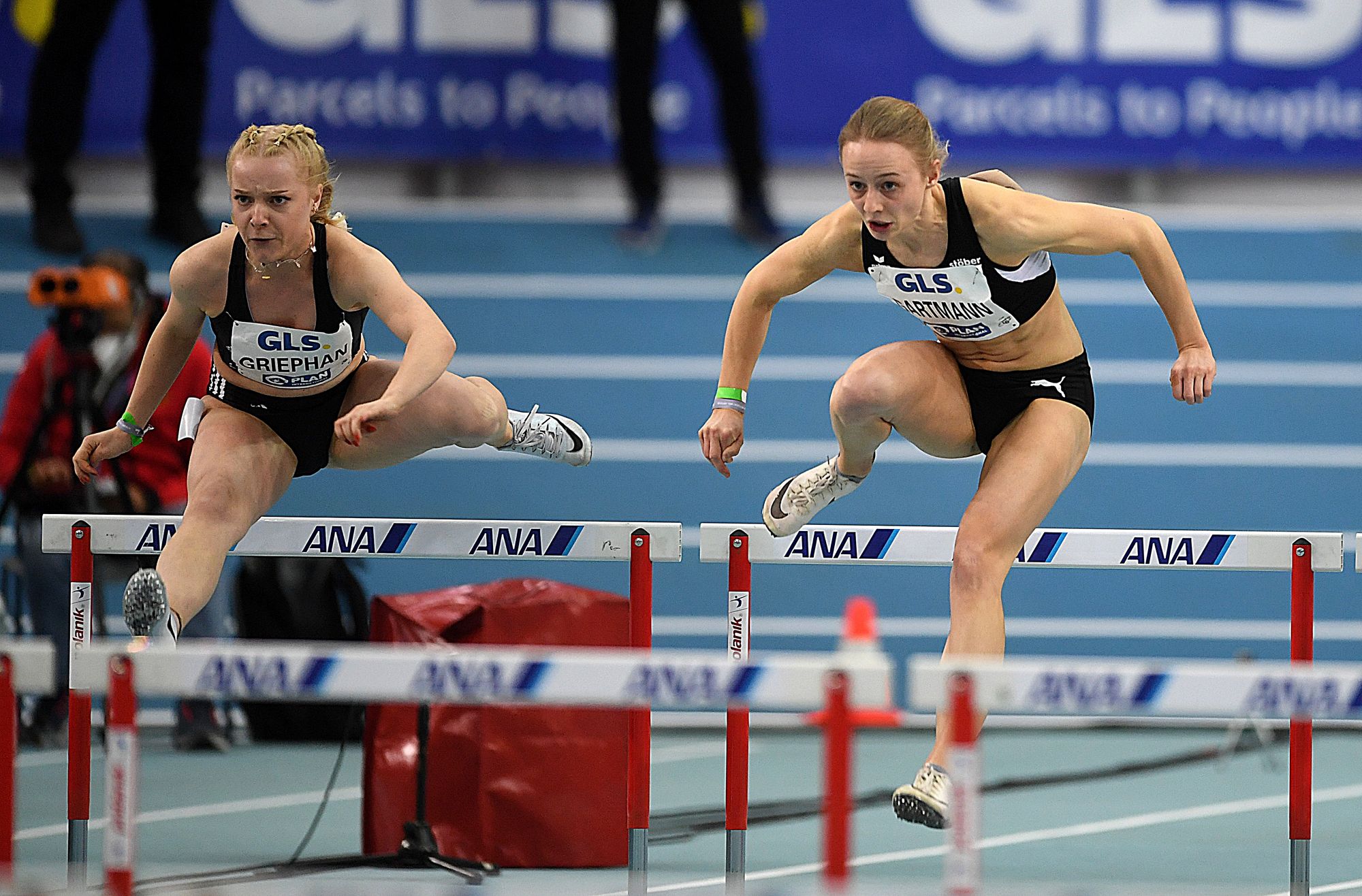 Die große Überraschung, nicht nur aus hessischer Sicht, war Gianina Gartmann. Die Athletin vom SSC Bad Sooden-Allendorf reiste mit einer (Jahres)Bestmarke von 8,50 Sekunden nach Leipzig an. Die angehende Lehrerin blieb im zweiten Vorlauf „fehlerlos“ und lieferte mit 8,31 Sekunden eine neue persönliche Bestzeit ab, hatte lediglich Louisa Grauvogel (LAV Bayer Uerdingen-Dormagen/8,29 sec.) ganz knapp vor sich und buchte damit auf dem direkten Weg das Final-Ticket. Als dann im Endlauf die TV-Kamera die acht Athletinnen zur Vorstellung abschwenkte, strahlte Gianina übers ganze Gesicht. Auch der Hallensprecher merkte an, dass sich Gartmann mit diesem Erfolg sicher selbst überrascht hat. Die Nordhessin bestätigte dann mit 8,32 Sekunden als Fünfte die Zeit aus der ersten Runden und stellte eindrucksvoll unter Beweis, dass ihre flotte Zeit keine Eintagsfliege war.