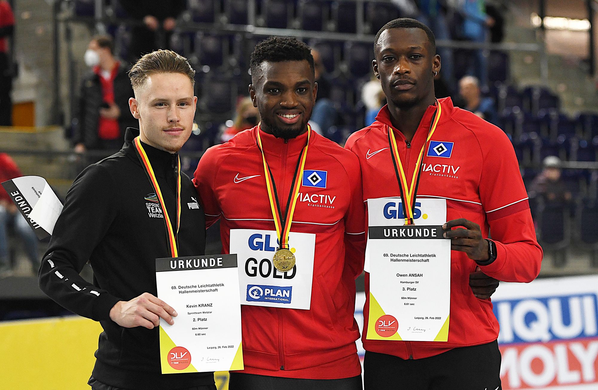 Mit einer Überraschung endete dann das Finale. Titelverteidiger Kein Kranz, der in dieser Saison bereits einige flotte Rennen gezeigt hatte und 6,59 Sekunden auf der Habenseite vorweisen konnte, musste sich Youngster Lucas Ansah-Peprah (noch U23) geschlagen geben. Der Shooting-Star der nationalen Sprintszene stellte mit 6,58 Sekunden die Jahresbestzeit des abwesenden Julian Wagner (LC Top-Team Thüringen) ein und blieb klar unter der Norm für die Hallen-WM (6,63 sec.) für Belgrad. Kevin Kranz kam als Zweiter mit 6,60 Sekunden ganz nah an seine Jahresbestzeit (6,59 sec.) ran. Das Podium komplettierte mit 6,61 Sekunden Owen Ansah (ebenfalls HSV).