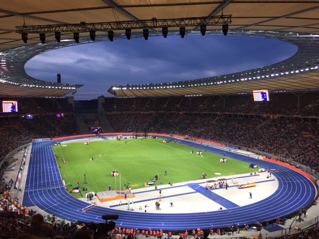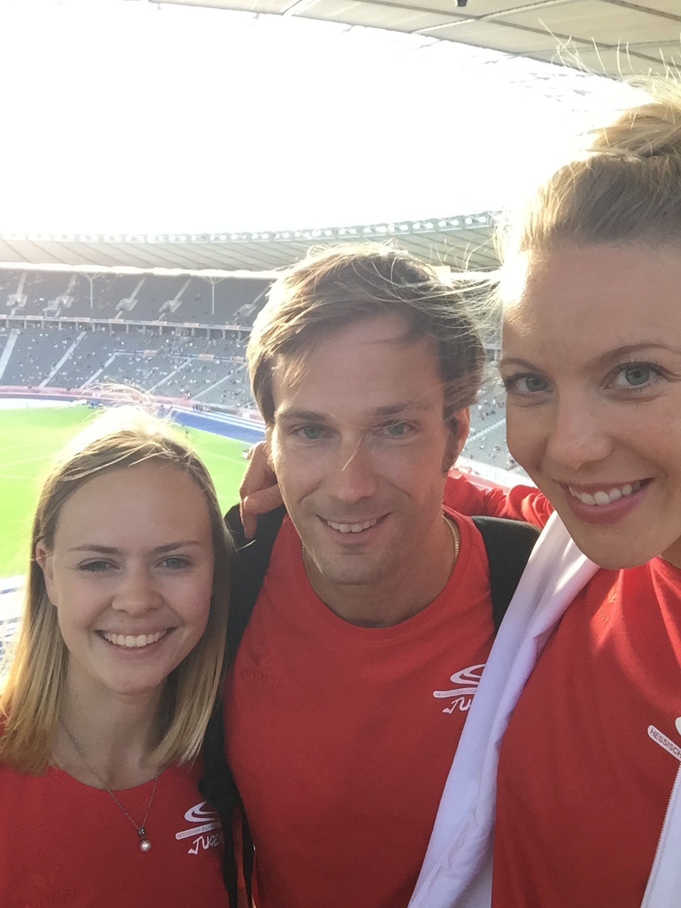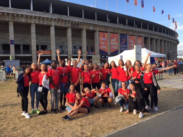 In roten T-Shirts und voller Vorfreude ging es mit der Bahn zum Stadion. Dort angekommen machte die Gruppe Fotos, versorgte sich mit Essen und fand sich anschließend auf ihren Sitzplätzen ein. Die Stimmung im Stadion und bei den TeilnehmerInnen war grandios. Alle Athleten lieferten einen spannenden Wettkampf und mit Gold für Mateusz Przybylko (Hochsprung) und Malaika Mihambo (Weitsprung) sowie Silber und Bronze für Nadine Müller und Shanice Craft (Diskuswurf) erzielten die Deutschen ein fantastisches Ergebnis. Euphorisiert von der geballten Kraft und Stimmung im Stadion mit über 60.000 Zuschauern war die Gruppe auf dem Rückweg noch voller Tatendrang. In der Jugendherberge angekommen, fielen doch alle ziemlich schnell ins Bett und auf den Fluren war es still. Das nutzte das Betreuungs-Team um den Tag in Ruhe Revue passieren zu lassen.
