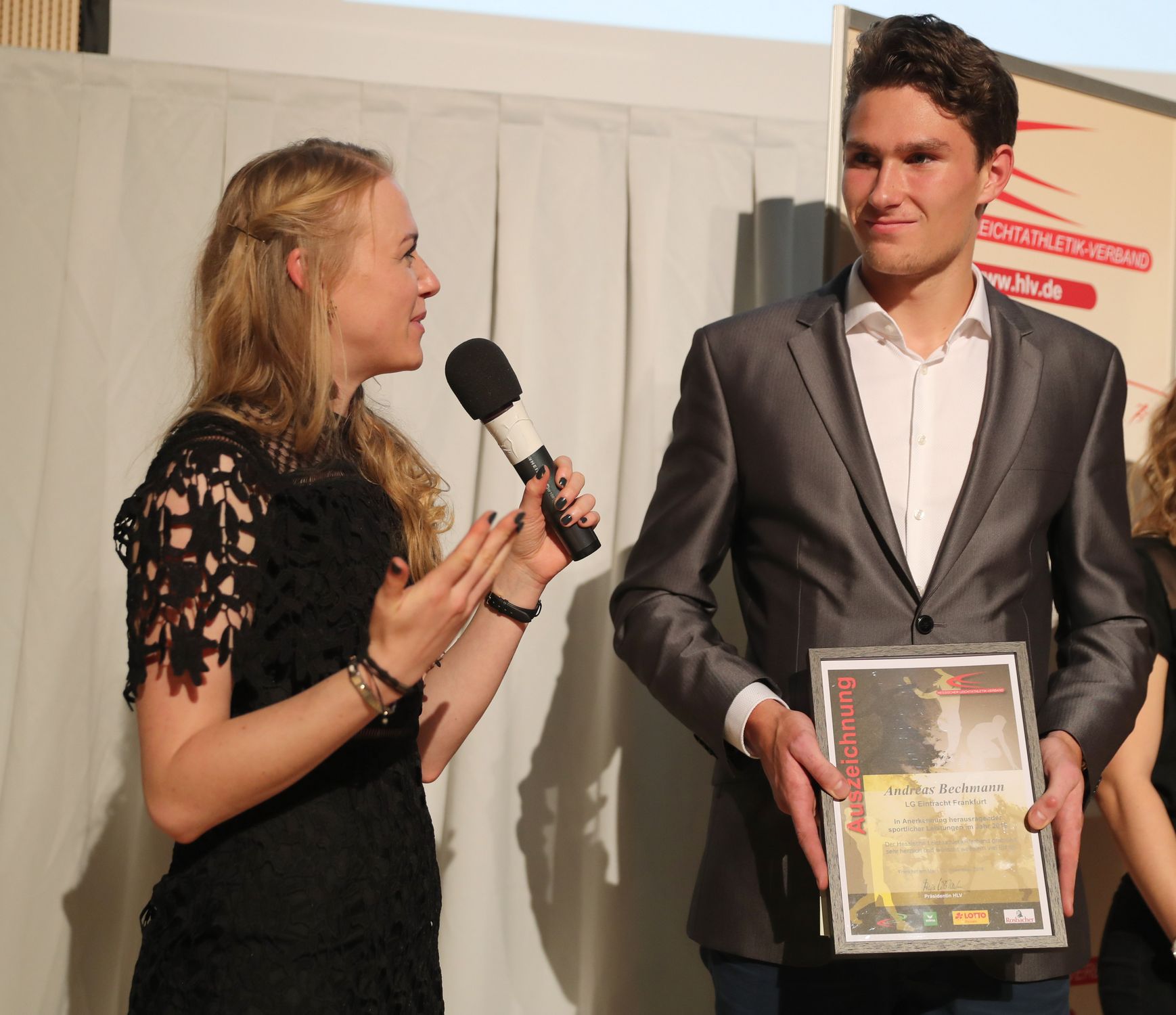 Mit der großen HLV-Gala ist die Saison 2018 der hessischen Leichtathletik offiziell abgeschlossen worden. Die Veranstaltung in der Sportschule Frankfurt des Landessportbunds Hessen begann mit einem Video, das die Highlights im zurückliegenden Wettkampfjahr emotional dokumentierte, es folgte die Begrüßung von HLV-Präsidentin Anja Wolf-Blanke und Franz-Josef Kemper, dem Vorsitzenden des Leichtathletik-Fördervereins Hessen. Zu den Ehrengästen, die die Gäste ebenfalls begrüßten, gehörten lsb h-Präsident Rolf Müller, Jens-Uwe Münker (Abteilungsleiter Sport im hessischen Innenministerium) sowie Heinz Zielinski, Vorstandsvorsitzender der Stiftung Sporthilfe Hessen. Die Moderation oblag Julia Nestle und Chantal Buschung, zwei charmanten Damen mit Fachwissen. Und so kam ein festlicher Abend entspannt in Schwung.