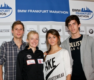 Aufgrund diverser Nachfragen an dieser Stelle noch eine kurze Aufklärung, was aus dem „HLV-Laufteam geworden ist, das beim Frankfurt-Marathon am Start war. Das Quartett in der Besetzung Clemens Kammer (LG Reinheim-Roßdorf), Gesa Krause (LG Eintracht Frankfurt), Benjamin Stalf (Wiesbadener LV) und Katharina Heinig (LG Eintracht Frankfurt) wollte auf eigenen Wunsch bereits um 10 Uhr gemeinsam mit den Marathonläufern auf die Strecke gehen; der reguläre Staffelstart war eine halbe Stunde später. Deshalb erfolgten für das „HLV-Laufteam“ keine offizielle Zeitnahme und keine offizielle Wertung. Die inoffizielle Zeit der von Landestrainer Wolfgang Heinig zusammengestellten Gruppe beträgt 2:28:14 Stunden. Damit war das „HLV-Laufteam“ unter 1.604 Mannschaften, die das Ziel in der Festhalle erreichten, am zweitschnellsten unterwegs. Die beste Zeit (2:28:03) erreichte die sogenannte Frontrunner-Staffel (Dietmar Bier, Johannes Weingärtner, Carsten Stegner, Daniel Naumann) eines Sportartikelherstellers. Aufgeteilt waren die klassischen 42,195 Kilometer in die Distanzen 12, 7, 9,5 und 13,7 Kilometer.