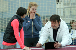 Trotz stabiler Leistungen auf hohem Niveau – im letzten Sommer lag ihre Bestleistung noch bei 1,73 Meter, gleich in ihrem Hallen-Wettkampf im Dezember steigerte sie sich auf 1,76 Meter und im Januar schließlich auf 1,80 Meter – muss sich Mona Gottschämmer ihr Selbstbewusstsein immer wieder neu erarbeiten. "Wenn ich weiß, wie hoch die anderen schon gesprungen sind, schüchtert mich das erst einmal ein." So zum Beispiel die 1,82 Meter, mit denen die ebenfalls noch zur U18 zählenden Lisa Maihöfer und Leonie Reuter eine Woche zuvor bei den Süddeutschen Meisterschaften an die Spitze der nationalen Nachwuchs-Bestenliste gesprungen waren. Der Blick danach ging nur nach vorn. Sophia Sagonas ermunterte ihren Schützling an sich zu glauben und den unnötigen Bruch bei 1,78 Meter in Karlsruhe hinter sich zu lassen. Besondere Konzentration lag auf den ersten Versuchen. "Im direkten Vergleich mit gleichstarken Springerinnen sind erfolgreiche erste Versuche besonders wertvoll", so Sophia Sagonas. Mit dem Ergebnis, dass Mona Gottschämmer beide Kontrahentinnen in Neubrandenburg hinter sich ließ, wenn auch nur durch die unterschiedliche Anzahl von Fehlversuchen über 1,78 Meter getrennt. Einen ähnlich knappen Ausgang erwartet Sophia Sagonas im Hinblick auf die Nominierung für die U18-Weltmeisterschaften im kolumbianischen Cali (15. bis 19. Juli). Die vom Deutschen Leichtathletik-Verband (DLV) geforderten 1,78 Meter werden ihrer Einschätzung zufolge kaum reichen. "Ich kann mir sogar gut vorstellen, dass man höher als 1,80 Meter springen muss, um dabei zu sein", so Sophia Sagonas. In diesem Winter sind bereits vier U18-Springerinnen 1,78 Meter oder höher gesprungen. Allerdings sind nur zwei Plätze zu vergeben. "Die Tagesform kann entscheidend sein", glaubt Sophia Sagonas, die schon jetzt sagt, dass man den Nicht-Qualifizierten keinen Vorwurf machen darf. "1998 ist einfach ein starker Jahrgang im Hochsprung der weiblichen Jugend."