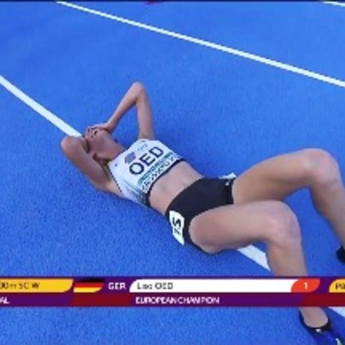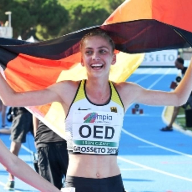 Lisa Oed vom SSC Hanau-Rodenbach hat am Samstagabend bei den U20-Europameisterschaften in Grosseto (Italien) den ersten Titel für den Deutschen Leichtathletik-Verband gewonnen und damit nach ihrem Erfolg bei der U20-Berglauf-EM vor zwei Wochen in Kamnik (Slowenien) eine weitere Glanzleistung gezeigt. Mit einer pfeilschnellen letzten Runde ließ die 18-Jährige die Favoritin Tatsiana Shabanava (Weißrussland/10:03,32) hinter sich und lief in persönlicher Bestzeit von 10:00,79 Minuten zur Goldmedaille. Platz drei holte sich die Türkin Uskun Gülnaz (10:19,44). Dabei hatte das Rennen mit einem Schreckmoment begonnen: Mitfavoritin Lili Anna Toth stürzte an einem Hindernis, die weiteren Läuferinnen stolperten über sie. Die Ungarin konnte das Rennen nicht wieder aufnehmen, obwohl ihre Teamkollegin Tira Pavuk bei ihr blieb und sie zum Weitermachen ermunterte. Was dazu führte, dass auch diese aussichtslos zurückfiel.<ENDE/>