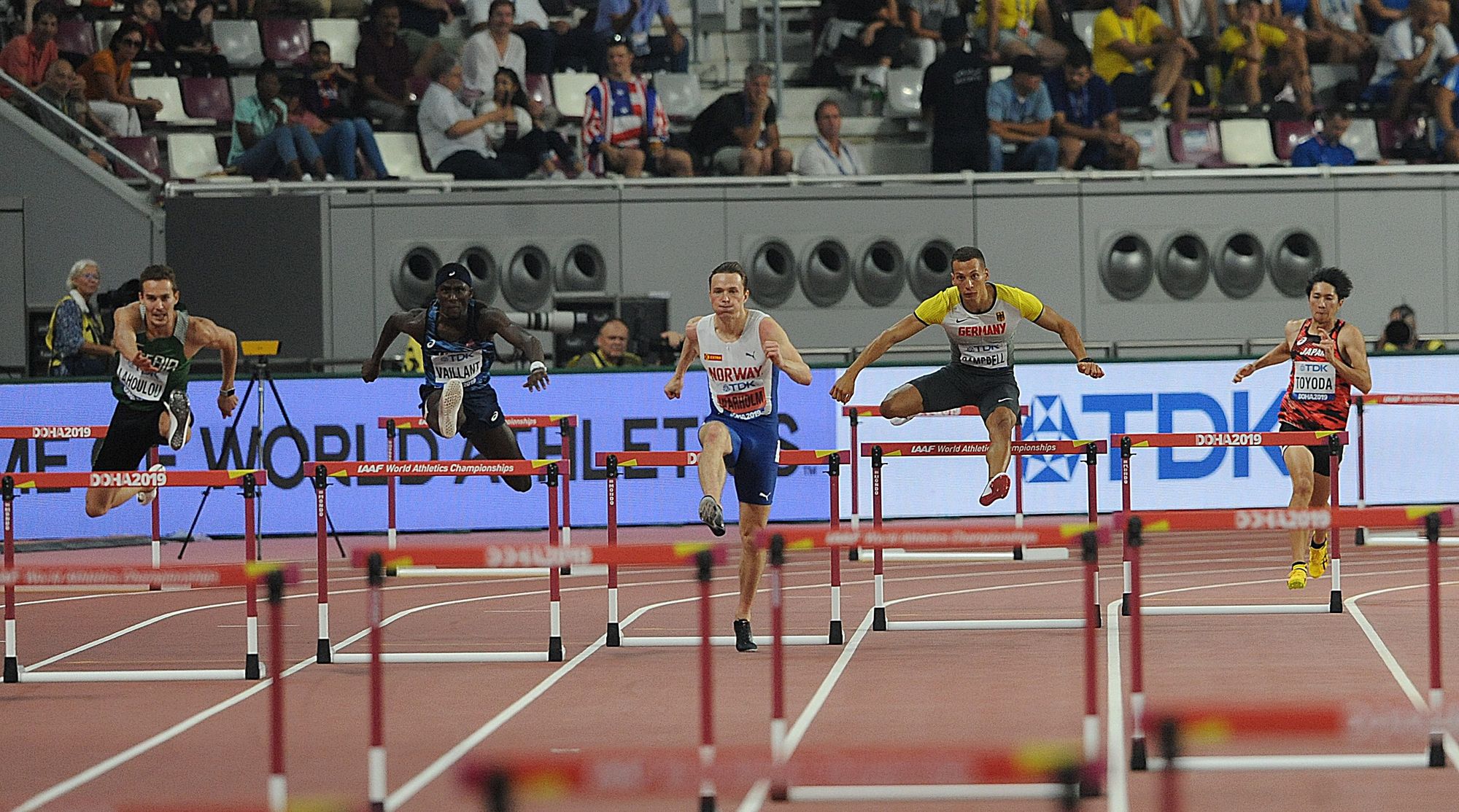 Die beiden letzten Plätze für den Endlauf am Montag gingen an Rai Benjamin (USA/48,52 sec.) und unter dem Jubel der Zuschauer an Abderrahmen Samba (48,72 sec.), einen der wenigen Top-Athleten aus dem Gastgeberland Qatar.