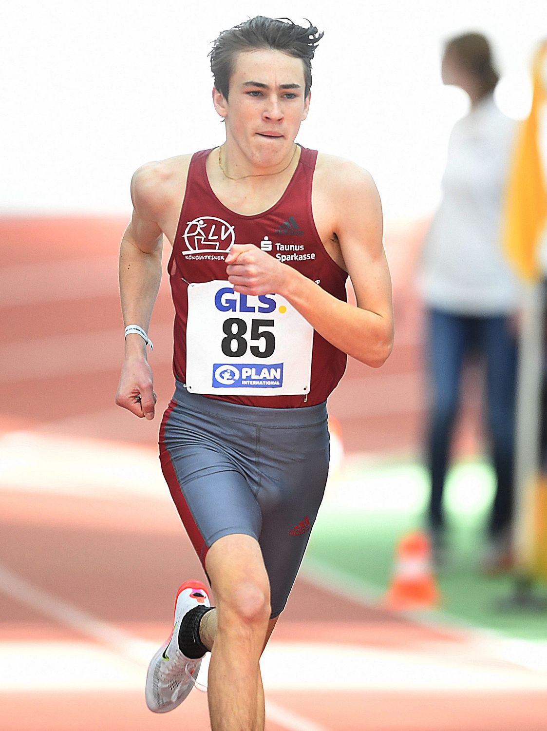 200 Meter: Finn Kohlenbach (Königsteiner LV) gab auf der Hallenrunde von Beginn an richtig Vollgas. Das war auch angesagt, denn aus den fünf Vorläufen ging es nur für die acht Zweitschnellsten weiter ins A- bzw. B-Finale. Der KLVler blieb als Sieger seines Rennens mit starken 21,91 Sekunden erstmals unter der 22-Sekunden-Marke und sicherte sich damit, etwas überraschend, den letzten Platz im A-Finale. Dort musste Finn dann auf der engen Innenbahn starten. Bei seiner Körpergröße und den engen Kurvenradien blieb die Stoppuhr dann bei 22,27 Sekunden (4.) stehen.