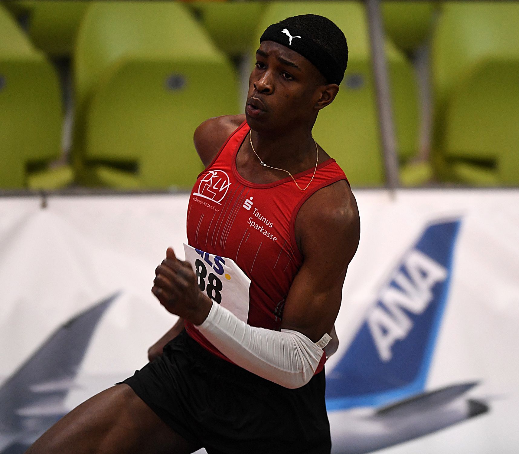 60 Meter: Richtig gut drauf war Juan-Sebastian Kleta (TV Gelnhausen), der nach 6,96 Sekunden in der ersten Runde in den Zwischenlauf stürmte. Hier packte er dann noch ein Schippe drauf und machte mit 6,92 Sekunden die Teilnahme am Finale klar. Mit einem flotten Start und einer guten Beschleunigungs-Phase folgte eine weitere Steigerung auf tolle 6,89 Sekunden, was mit dem sechsten Platz belohnt wurde. Für den Endlauf musste Juan-Sebastian übrigens das parallel stattfindende Weitsprungfinale unterbrechen. Doch dazu später mehr. Der Titel ging mit flotten 6,72 Sekunden an Chidiera Onuoha (THC Brühl). Elias Maurer (TSV Amicitia Viernheim) beendete seinen DM-Auftritt im Vorlauf nach 7,12 Sekunden. Ein Tick schneller war mit der neuen Bestzeit von 7,11 Sekunden Julian Rubel (Königsteiner LV) unterwegs, der noch der jüngeren Altersklasse U18 angehört.