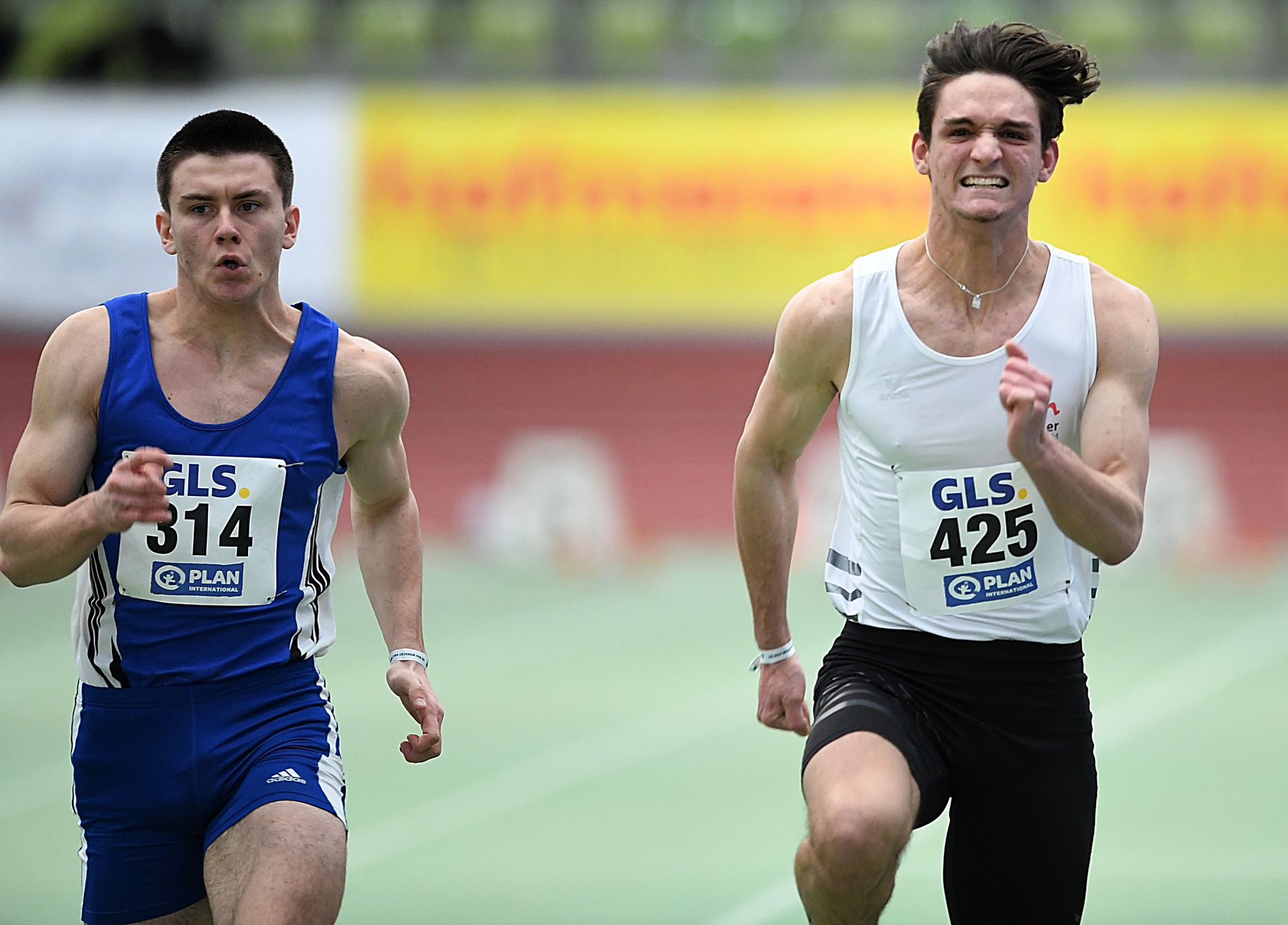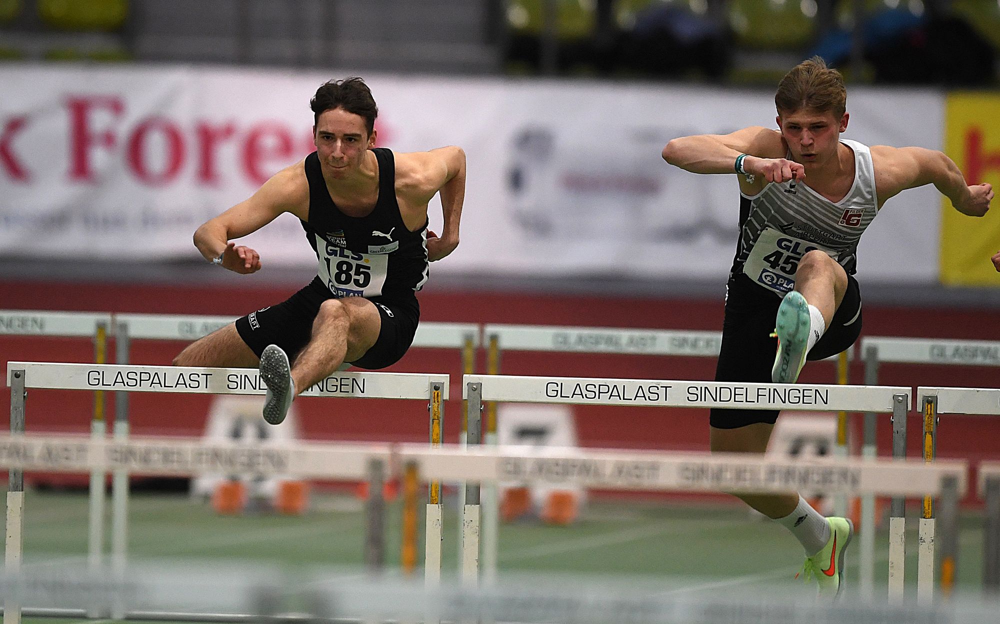 Über die 60 Meter Hürden war Aaron Giurgian (Sprintteam Wetzlar) einer der vier Favoriten auf eine DM-Medaille. Beim Blick in die Meldeliste trennte das schnelle Hürden-Quartett lediglich 0,10 Sekunden. Manuel Mordi (Hamburger SV) legte zum Auftakt gleich einmal starke 7,85 Sekunden vor, Aaron war mit 7,87 Sekunden lediglich einen Tick langsamer, Mario Quinze Shelton (SC Berlin) lief 7,92 Sekunden und Gavin Claypool (SCC Berlin/8,14 sec.) hatte die Handbremse noch nicht ganz gelöst. Das Finale endete dann mit zwei Stürzen. Der HSVler Mordi stürzte in Führung liegend an der letzten Hürde. Auch Mario Quinze Shelton, mit 7,81 Sekunden der Jahresbeste, blieb am letzten Hindernis hängen und musste alle Medaillenträume begraben. Aaron Giurgian kam ohne Fehler durch und holte sich in der neuen deutschen Jahresbestzeit von 7,79 Sekunden den Titel vor Gavin Claypool (SCC Berlin/8,08 sec.).