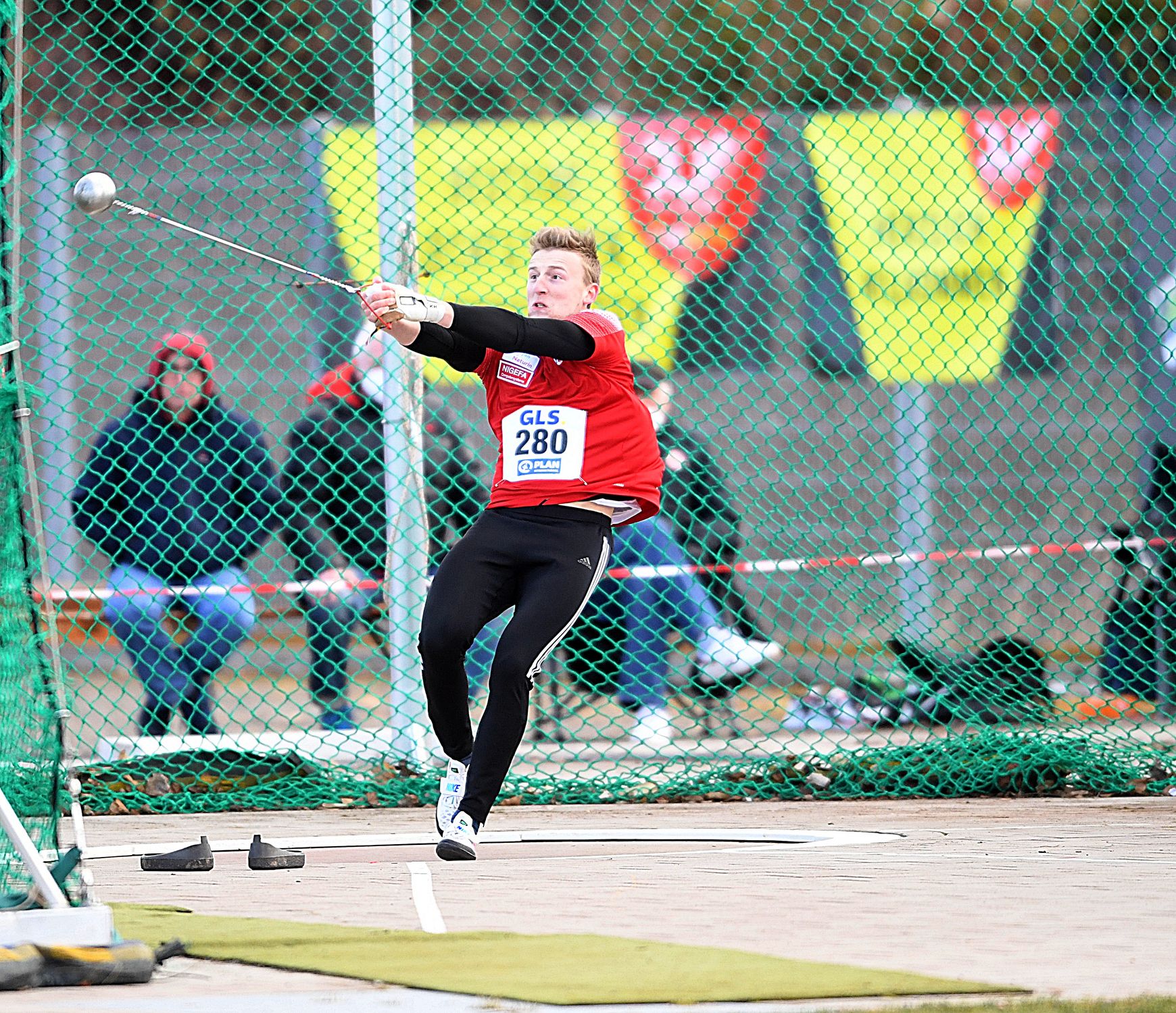 Beim Hammerwerfen reichten Kai Hurych (KSV Fürth) 66,40 Meter, um Dawid Morgalla (TSV Bayer 04 Leverkusen/59,18 Meter) auf Distanz zu halten und den Winterwurf-Titel zu holen. Kai zeigte wieder eine konstant solide Serie mit sechs gültigen Versuchen, die alle weiter als 63 Meter flogen. Tim Steinfurth (LG Eppstein-Kelkheim) markierte mit seinem letzten Versuch 58,34 Meter und verdrängte damit Leon Bierende (SV Teutschenthal/58,27 m) ein paar Zentimetern Vorsprung aus den Medaillenrängen. Marvin Baumann (TV Fränkisch-Crumbach) musste mit 56,75 Metern (5.) zufrieden sein. Michael Neuenroth (Eintracht Frankfurt/9.) musste mit nur 52,50 Metern bereits nach dem Vorkampf sein Wurfgerät wieder einpacken.