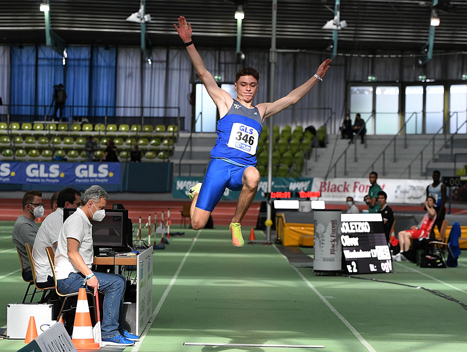 Mit dem erwarteten Sieg von Oliver Koletzko (Wiesbadener LV) endete der Weitsprung, dem ein einziger gültiger Versuch zum Titelgewinn reichten. Am Ende gingen 7,50 Meter für den amtierende U20-Europameister von Tallinn in die Wertung ein. Am nächsten Wochenende möchte Koletzko bei der DM der Aktiven in Leipzig seine Hallenbestmarke von 7,63 Metern ein gutes stück nach oben verschieben und den Männern etwas Druck machen. Mit Juan-Sebastian Kleta (TV Gelnhausen) wurde ein weiterer Hesse zur Siegerehrung gerufen. Kleta, der den Weitsprung wegen seiner Teilnahme am Sprintfinale unterbrechen musste, verbesserte sch mit seinem letzten Sprung auf 7,22 Meter und holte Bronze. Für Marc Mercier (ASC Darmstadt) waren die „Deutschen“ bereits nach dem Vorkampf (6,77 m) vorzeitig beendet.