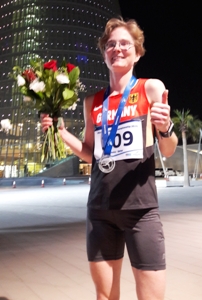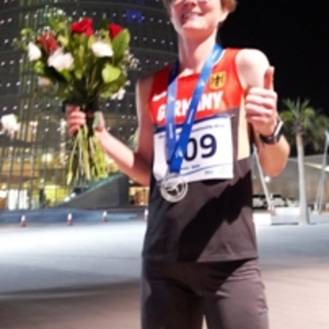 Nele Alder-Baerens ist in Doha (Katar) WM-Zweite im 50-Kilometer-Straßenlauf geworden. Mit der Silbermedaille krönte die Athletin des Ultra Sport Clubs Marburg ihre herausragende Saison. Denn drei deutsche Meisterschaften (50 Kilometer, 100 Kilometer und mit nationalem Rekord im Sechsstundenlauf) standen 2016 bereits zu Buche. Bei der WM sollte es für Alder-Baerens trotz der von ihr gehaltenen Weltjahresbestzeit von 3:20:33 Stunden aber in erster Linie um die Bestätigung ihres Top-Ten-Ergebnisses aus dem Vorjahr gehen - und die Konkurrenz war hochkarätig. Nach zehn Kilometern - vorne legten die Afrikanerinnen ein Höllentempo vor - lag die Wahl-Hessin bereits auf Platz sechs. „Nach einer Weile lief ich auf eine Dreiergruppe mit von mir hoch eingeschätzten Läuferinnen auf und überlegte: Vorbeigehen oder dranhängen? Da ich lieber mein Tempo halten wollte, lief ich vorbei“, erzählte sie später. Alder Baerens lief auf dem 2,5-km-Rundenkurs gleichmäßig, vor ihr liegende Athletinnen ließen nach. Vielen Teilnehmerinnen machten auch die noch am Abend sehr hohen Temperaturen zu schaffen.<ENDE/>