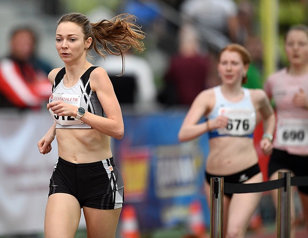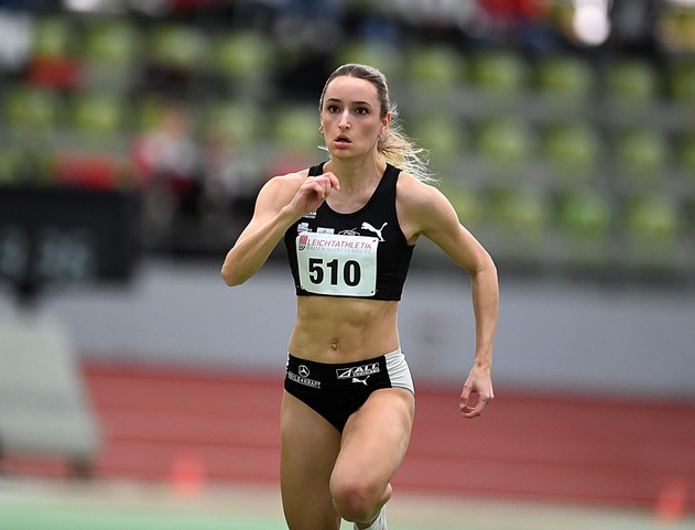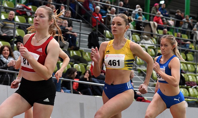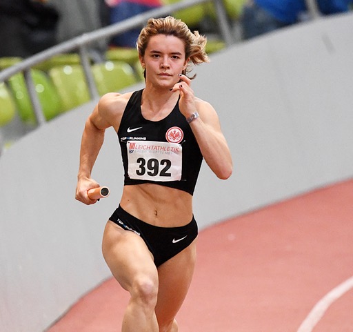 Bei den Frauen gingen gleich beide Titel auf den kurzen Distanzen nach Hessen. Antonia Dellert (Sprintteam Wetzlar/U23) gab mit der neuen Bestzeit von 7,35 Sekunden den Ton an und ist damit bundesweit die Nummer sechs! 60-Meter-Finalistin Alisha Ziegel machte dann über 200 Meter so richtig Druck, sprintete in starken 24,25 Sekunden souverän vor Carolin Bender (SSV Ulm/24,66 sec.) zum Titel. Damit wird die Eintrachtlerin bundesweit aktuell auf dem achten Platz geführt und kann mit einem DM-Start planen. Über 800 Meter bestätigte Sophia Wolf (TV Groß-Gerau) als Dritte mit 2:11,81 Minuten ihre Zeit von den „Hessischen“.