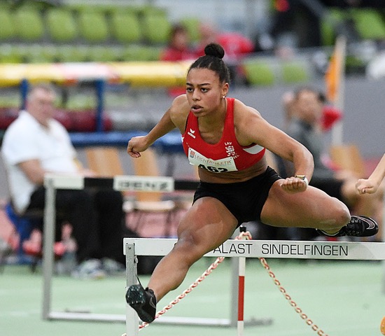 Siebenkämpferin Carolin Schäfer (Eintracht Frankfurt) hatte bei den 60 Meter Hürden nach 8,35 Sekunden (DM A-Norm) nur Viktoria Müller (LG Rhein-Wied/8,25 sec.) vor sich. Auch Laury Carilus (LAV Kassel/U23) könnte als Fünfte (8,56 sec.) den Sprung zur DM gepackt haben.