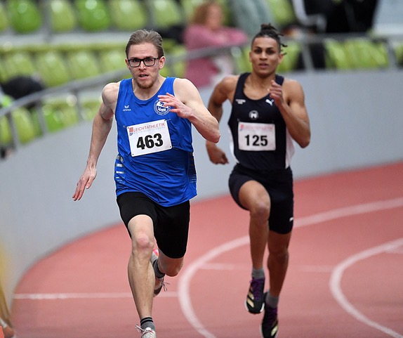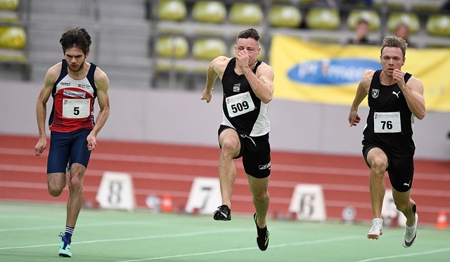 Über 60 Meter stürmte Robert Polkowski (Sprintteam Wetzlar) mit der Saisonbestzeit von 6,81 Sekunden auf den Bronzerang. Juan Sebastian Kleta (TV Gelnhausen/noch U20) wurde mit 6,86 Sekunden Siebter. Nur einem Wimpernschlag dahinter beendete Jonas Hennig (TSG Friedrichsdorf/8.) mit der neuen PB von 6,87 Sekunden das Finale. Das hessische Trio unterbot damit die B-Norm für die DM in Dortmund. Auch auf der Halllenrunde kamen drei Hessen unter die Top-Acht.