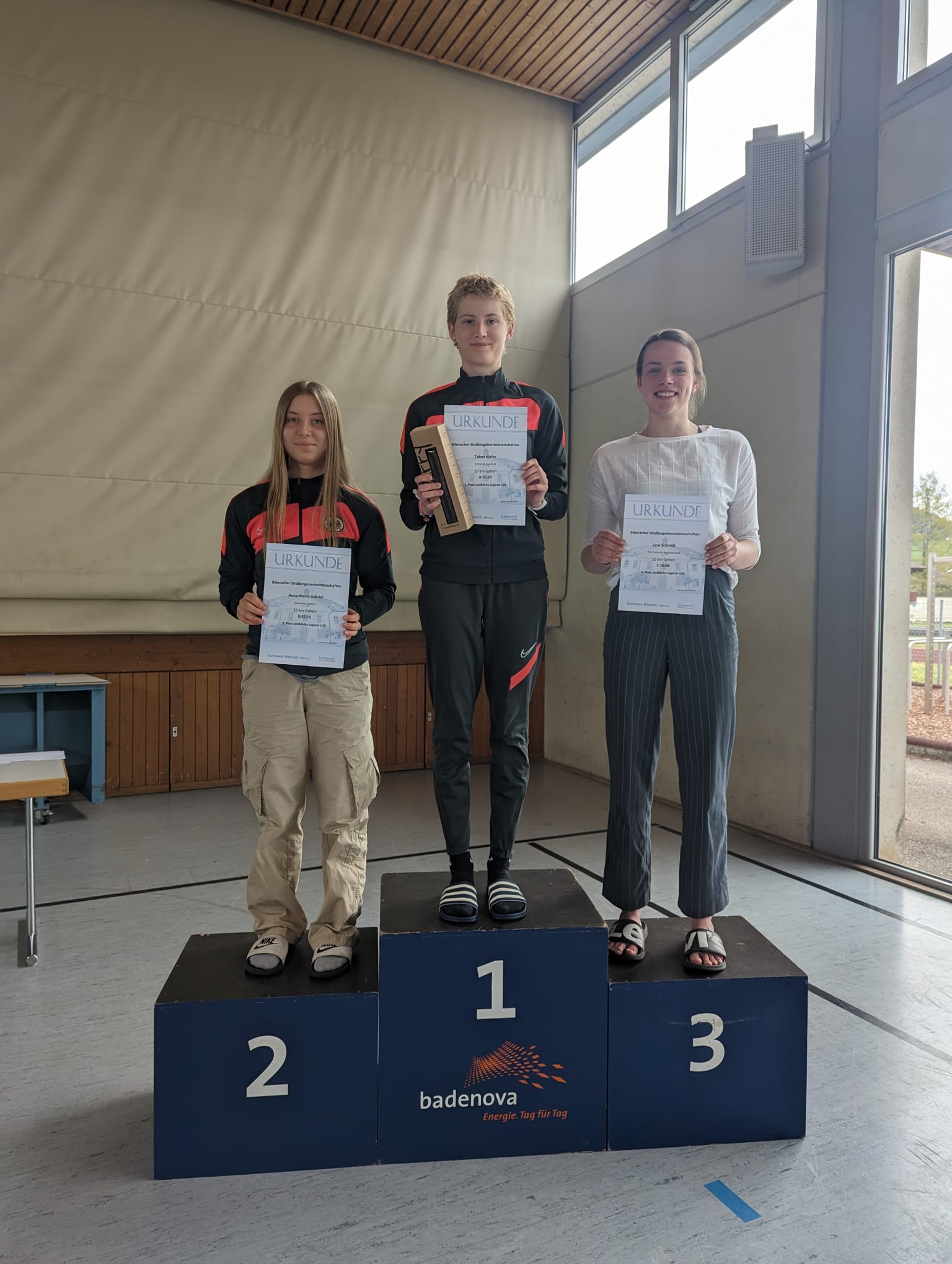Nach aktuellem Stand haben bisher drei U20-Mädels die Norm für die Team-EM, ausgehend von den Zeiten ist Tabea die Dritte. Schon vier U20-Geherinnen blieben unter dem Richtwert für Jerusalem. Bereits am ersten Mai-Sonntag kommt es in der Bundeshauptstadt bei den offen ausgeschriebenen Berlin-Brandenburgischen Meisterschaften zum finalen Duell zwischen der Adlerträgerin und ihrer Hauptkonkurrentin Ada Junghannß (Erfurter LAC, Bestleistung 50:54 Minuten) um den dritten Startplatz bei der Team-EM. Die Thüringerin hat in Berlin die letzte Chance, noch die Norm für Podebrady zu knacken. Dafür muss sie sich zudem noch vor Kiefer mit einer besseren Zeit platzieren, die sonst einen Startplatz sicher hat. In jedem Fall verspricht die restliche Saison noch eine spannende zu werden, wer sich die Tickets nach Jerusalem letztendlich sichern kann. Anna-Maria Gabriel (ebenfalls Eintracht Frankfurt) wurde in Biberach als Zweite mit 55:15 Minuten gestoppt.