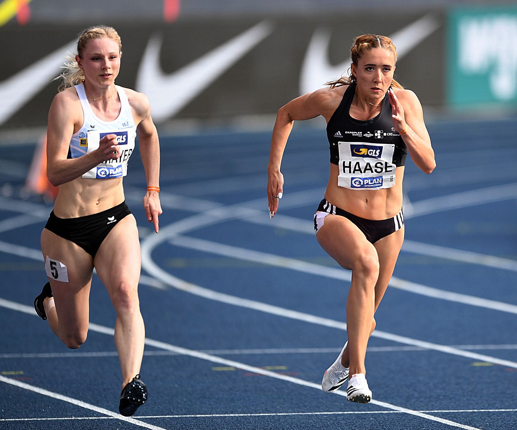 Mit vier Medaillen für die Leichtathleten aus Hessen endete der erste Tag der Deutschen Meisterschaften in Braunschweig. Es war kurz vor 20 Uhr, als die acht Sprinterinnen beim 100-Meter-Finale in den Startblock gingen. Und der Endlauf endete mit einer echten Überraschung. Hätte man im Vorfeld auf den Sieg von Alexandra Burghardt gesetzt, wäre ein satter Gewinn möglich gewesen. Die Athletin von der LG Gendorf Wacker Burghausen wuchs nach 11,36 Sekunden in der ersten Runde dann im Finale über sich hinaus. Mit hervorragenden 11,14 Sekunden (auch neue PB) holte sie nicht nur den Titel, sondern löste auch das Olympia-Ticket für Tokio. Auf den beiden nächsten Plätzen folgte ein Duo vom Sprintteam Wetzlar. Lisa Mayer präsentierte sich Siegerin ihres Vorlaufes mit 11,27 Sekunden. Die gleiche Zeit, die sie letzte Woche beim Team-Europacup in Chorzow gelaufen war. In Braunschweig zeigte die Uhr für Lisa jetzt sehr gute 11,16 Sekunden an, was DM-Silber bedeutete. Vereinskollegin Rebekka Haase (im Vorjahr Vizemeisterin) hatte als Dritte mit 11,32 Sekunden bereits einen größeren Rückstand.