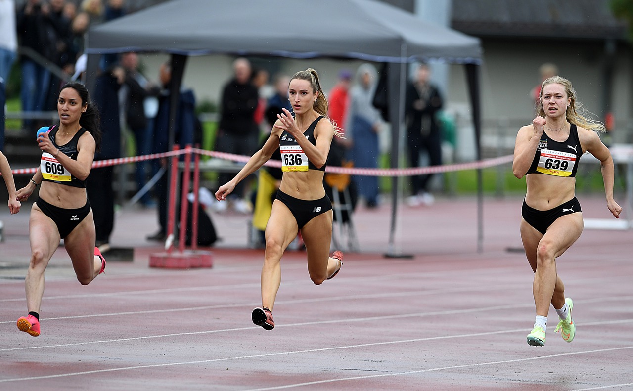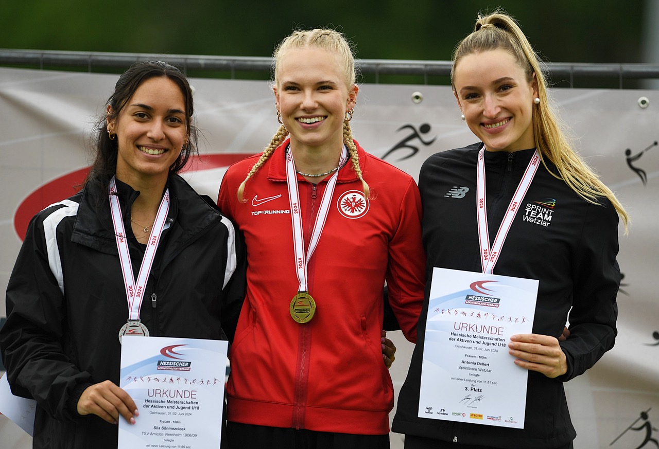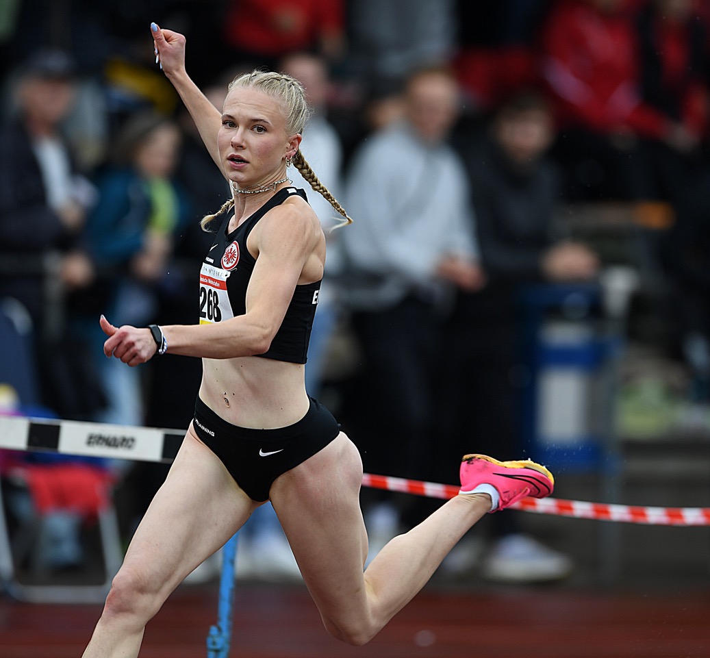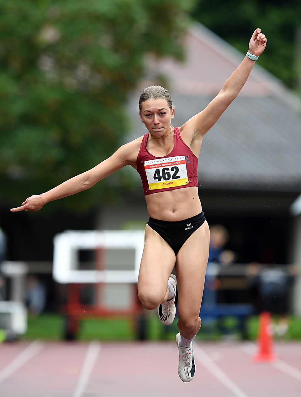 Beste Athletin in Gelnhausen war Malin Stavenow (Eintracht Frankfurt), die mit gleich drei Titeln bei den Frauen, die erfolgreichste Athletin darstellt. Nachdem sie am Samstag den klaren Sieg im 100m Finale in starken 11,41sek. einfuhr und mit der Eintracht-Staffel (45,48sek. gemeinsam mit Lara Tornow, Miriam Sinning und Alisha Zwergel) ebenfalls Gold gewann, gelang ihr am Sonntag ein großer Satz in die Weitsprunggrube: 6,57m - was für eine Bestleistung! So darf Malin mit einem Start in allen drei Disziplinen bei der DM in Braunschweig planen.