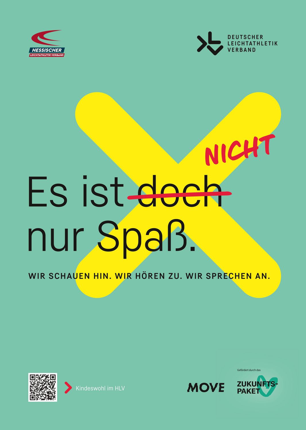 Die sechs abgebildeten Plakate sind Teil der Kampagne und zeigen nach Außen unser klares Bekenntnis zur Prävention! Zeigt auch ihr in eurem Verein, eurer Sportstätte, dass ihr hinschaut- hinhört- ansprecht und bestellt noch heute Plakate eurer Wahl mit dem Logo eures Vereins. Schickt uns dazu einfach euer Vereinslogo (wenn möglich als Vektorgrafik) und eure Plakatauswahl (welche Farben) an kindeswohl(@)hlv.de. Von uns bekommt ihr dann die fertige Druckdatei für eure Plakate, die ihr für eure Homepage, Instagram oder zum Ausdrucken von Plakaten nutzen könnt.