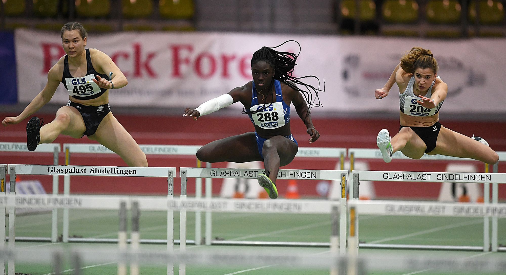 Alles andere als der Titel über 60 Meter Hürden für Hawa Jalloh wäre eine große Überraschung gewesen. Die Athletin vom Wiesbadener LV hatte beim Indoor-Meeting in Erfurt mit ganz starken 8,24 Sekunden für Aufmerksamkeit gesorgt. In der ersten Runde im Sindelfinger Glaspalast sorgten Hawa und Paula Grauvogel (SV Go Saar 05) mit Siegen in jeweils 8,40 Sekunden für die besten Zeiten. Naomi Krebs (Hannover 96) ergänzte mit 8,45 Sekunden das Top-Trio. Im Finale wurde dann die Handbremse gelöst. Jalloh setzte sich in 8,29 Sekunden gegen Krebs (8,34 sec.) und Grauvogel (8,37 sec.) durch.