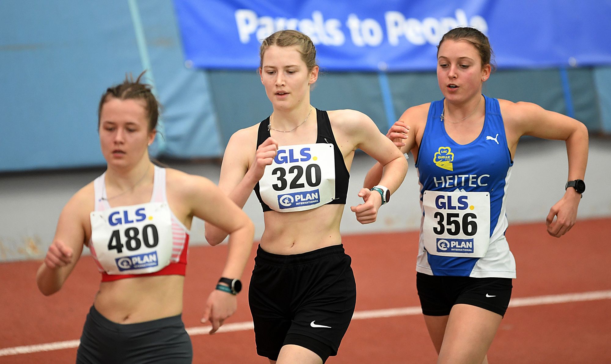 Das 3000-Meter-Bahngehen endete mit einem Doppelsieg für den SC Potsdam. Lena Sonntag zeigte in 14:42,53 Minuten ihrer Teamkollegin Lara Jolie Feigl (14:57,46 min.). Tabea Kiefer (Eintracht Frankfurt) hatte die fünfzehn Runden in der Halle nach 15:25,01 Minuten als Fünfte hinter sich gebracht.
