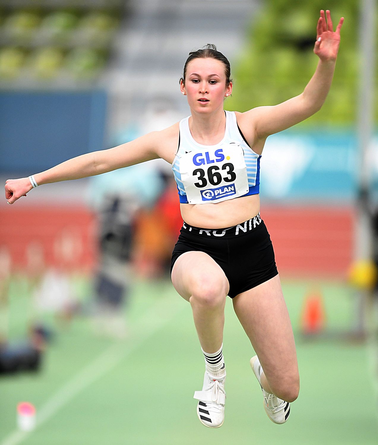 Anna Gräfin Keyserlingk (LAV Bayer Uerdingen/Dormagen) machte den Dreisprung zu ihrer Showbühne. Mit beeindruckenden 13,37 Metern flog sich Anna auf den zweiten Platz der Weltjahres-Bestenliste (U20). Die von Ruth Hildebrand (MTG Mannheim/12,41 m) angeführte Konkurrenz hatte fast einen Meter Rückstand. Masha-Sol Gelitz (GSV Eintracht Baunatal) brachte leider nur zwei gültige Versuche in die Wertung. Der bessere Sprung wurde bei 12,22 Meter gemessen, was der fünfte Platz für die junge U18erin war. Für Teamkollegin Finja Krug (auch U18) endete der DM-Trip bei 11,23 Metern (17.).
