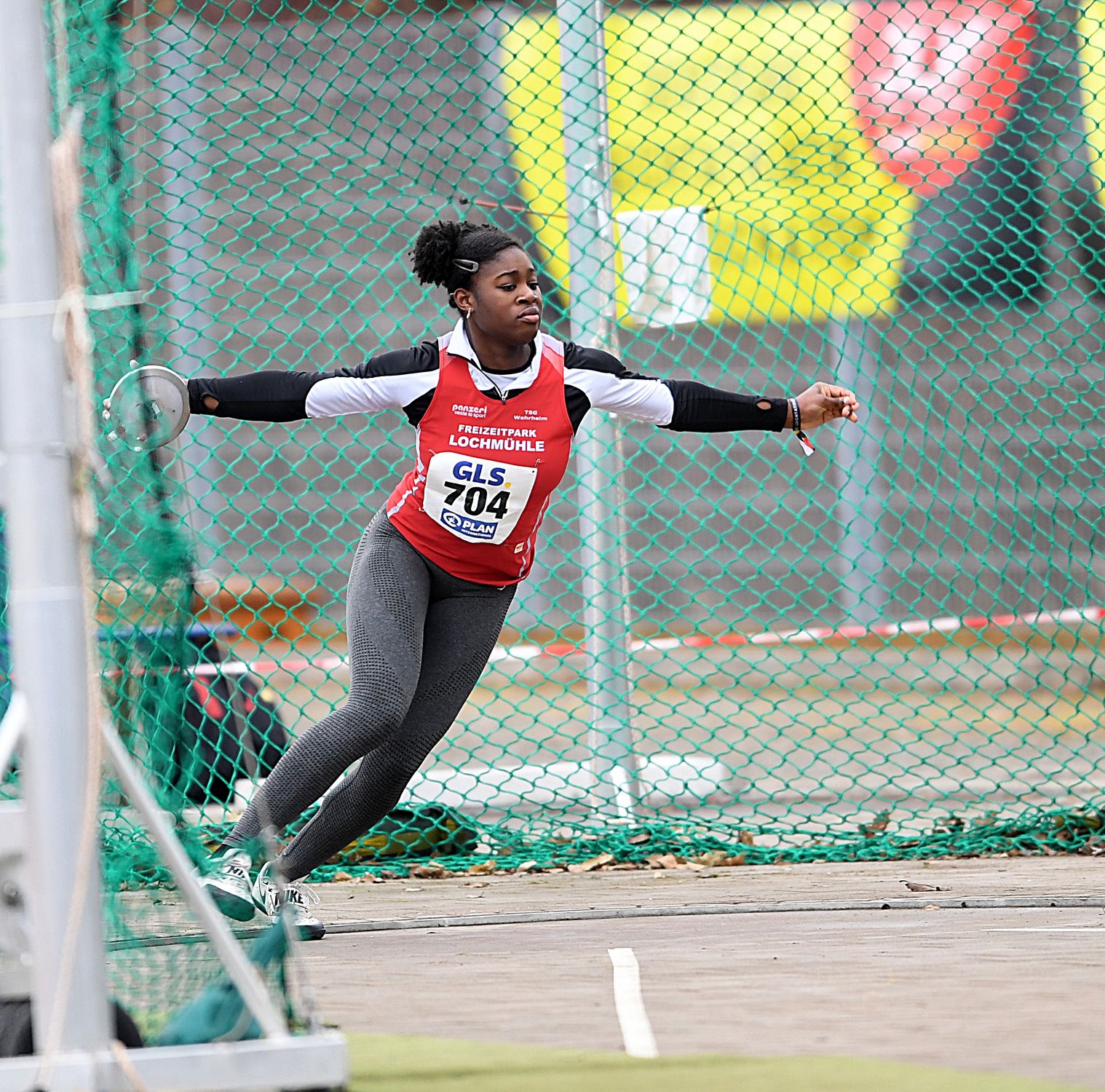 Eine Woche vor der DM hatte sich Katja Seng (LAZ Bruchköbel) mit einem Diskuswurf auf 52,22 Meter erneut die WM-Norm für Cali überboten und an die Spitze der Meldeliste gesetzt. Auch auf der Wurfanlage am Floschen-Stadion zeigte Katja wieder eine solide Serie, doch der Ausreißer nach oben fehlte. Erst im letzten Durchgang kratzte die Athletin aus dem Main-Kinzing-Kreis mit 49,99 Metern an der 50er Marke und sicherte sich damit die Vizemeisterschaft. Zuvor beförderte Lea Bork (LV 90 Erzgebirge) die ein Kilogramm schwere Metallscheibe auf 51,01 Meter und schnappte Seng damit den erhofften DM-Titel weg.