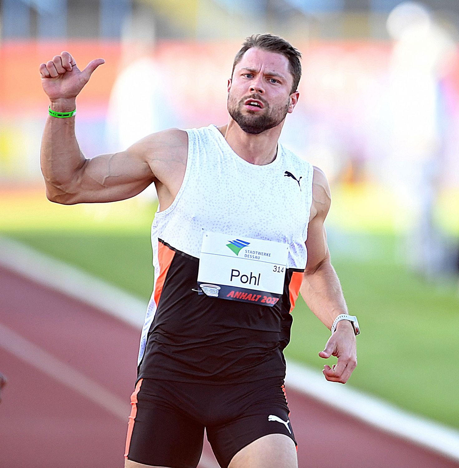 Etwas Pech hatte Michael Pohl vom Sprintteam Wetzlar, der im ersten Vorlauf über 100 Meter ran musste. Das Rennen war jedoch „vom Winde verweht“, was Böen von - 1,9 Metern pro Sekunde eindrucksvoll belegen. So blieb hinter Abeykoon Yupun Mudiyanselage (SRI/10,48 sec.) und Yannick Wolf (LG Stadtwerke München/10,62 sec.) mit 10,66 Sekunden „nur“ der dritte Platz. Das sollte am Ende nicht ganz für A-Finale reichen. Denn die Zeiten im zweiten Vorlauf waren durch einen leichten Rückenwind (+ 0,2 m/sec.) fast durchweg flotter. So schnappte Aleksandar Askovic (LC Top-Team Thüringen) mit 10,60 Sekunden dem Frankfurter Pohl den letzen Platz im „schnellen“ Finale vor der Nase weg. Hier wiederholte der Mann aus Sri Lanka mit starken 10,09 Sekunden (+ 2,2 m/sec.) seinen Vorjahressieg. Michael Pohl beendete sein Finale bei regulären Bedingungen auch 10,42 Sekunden als Zweiter.