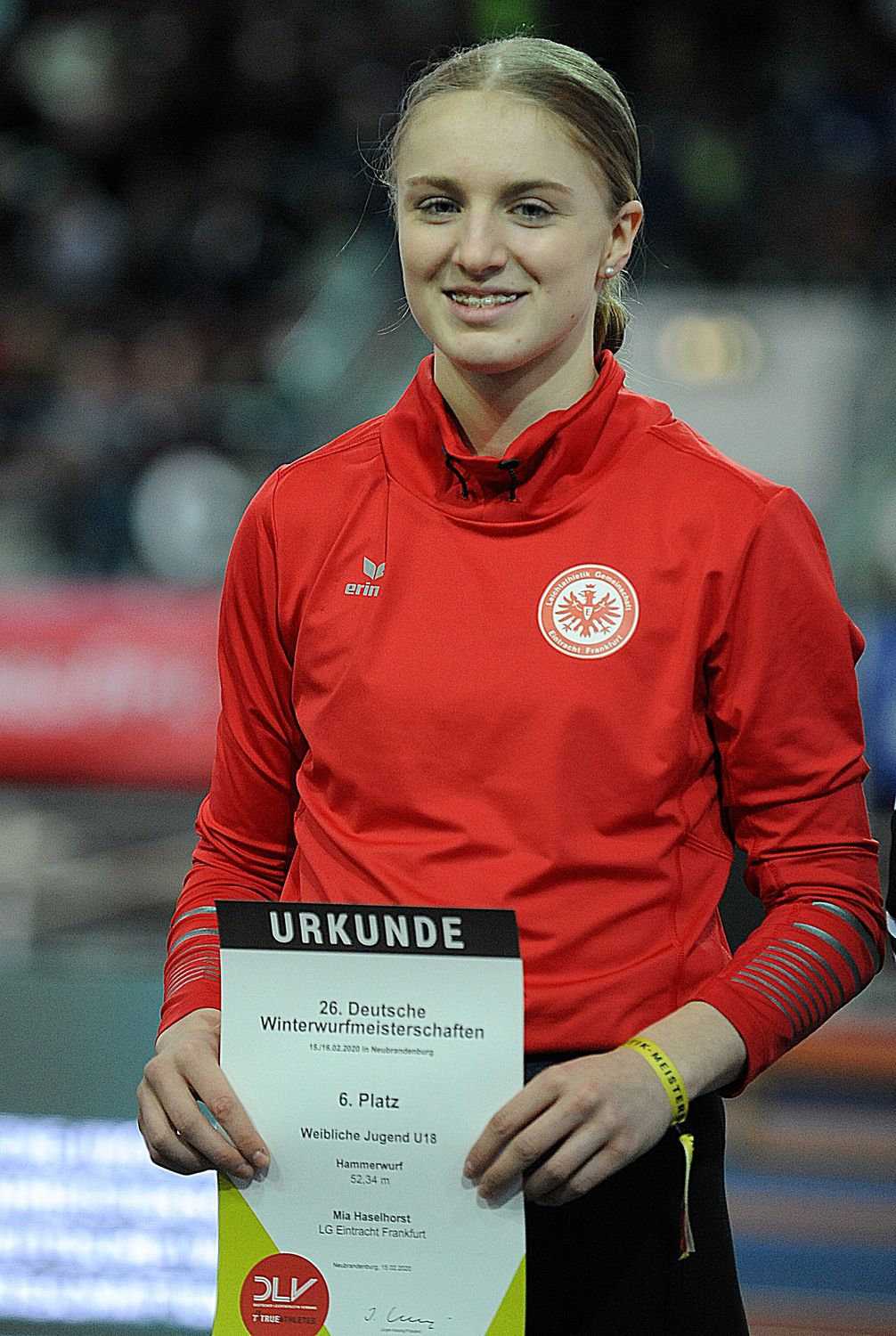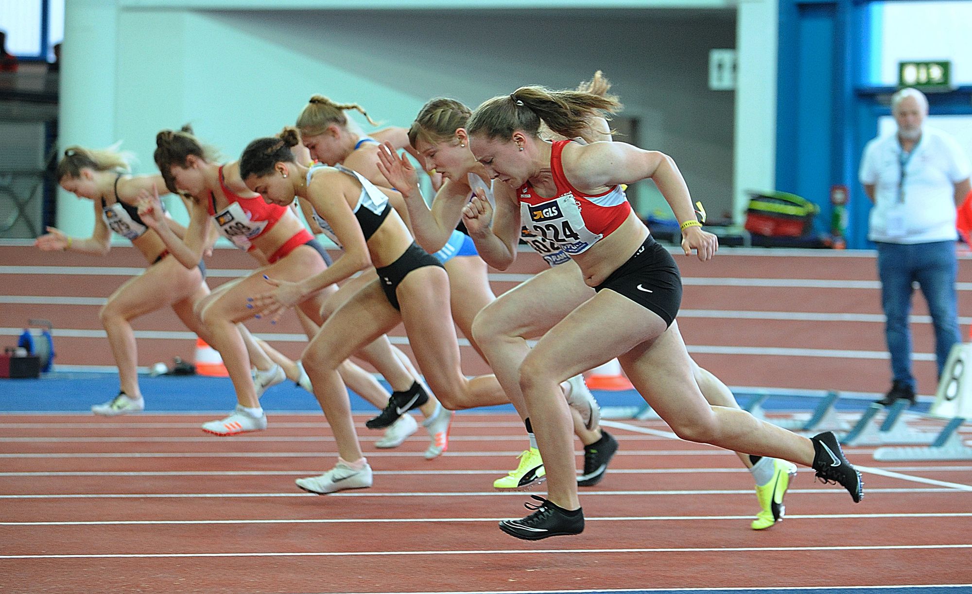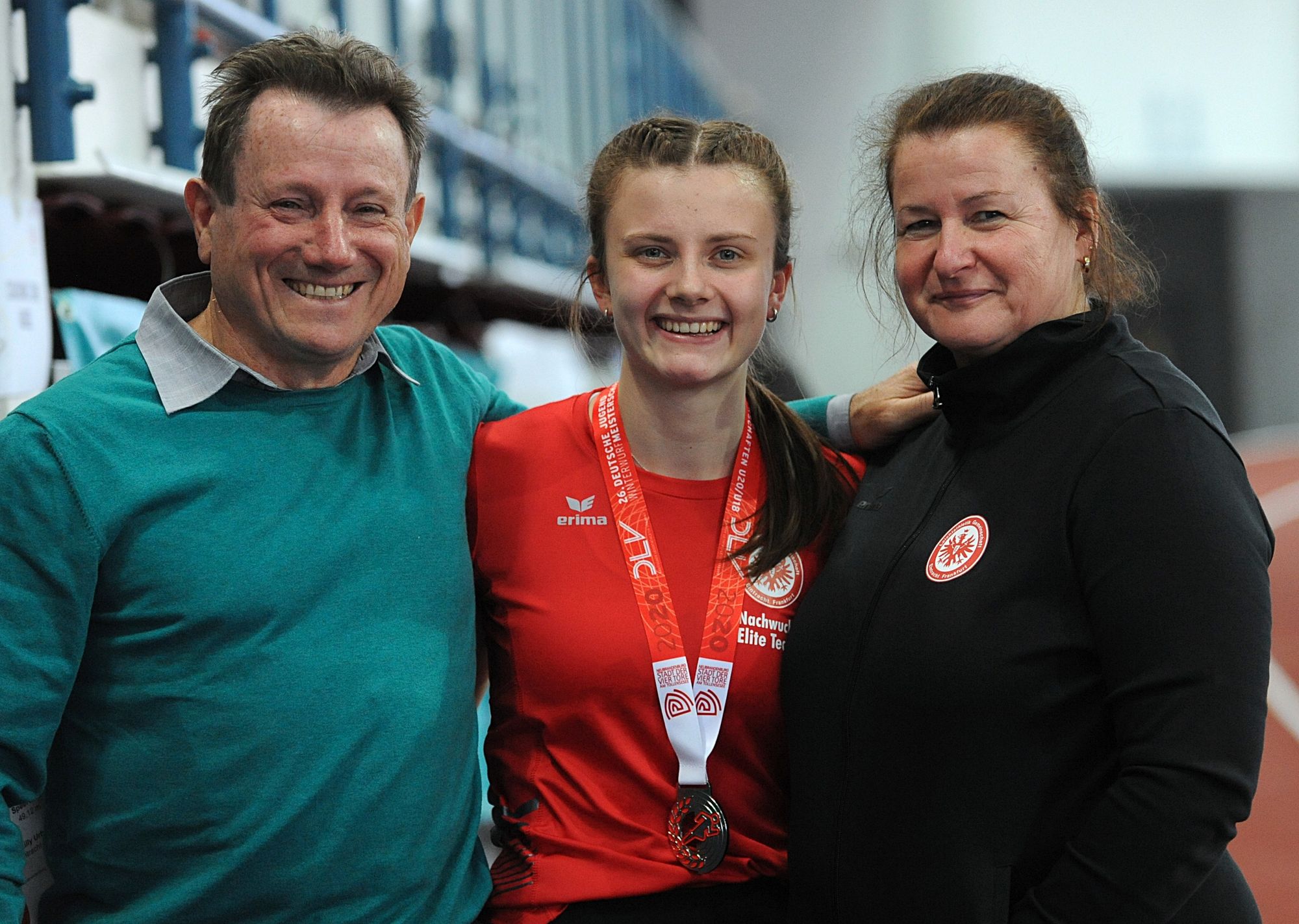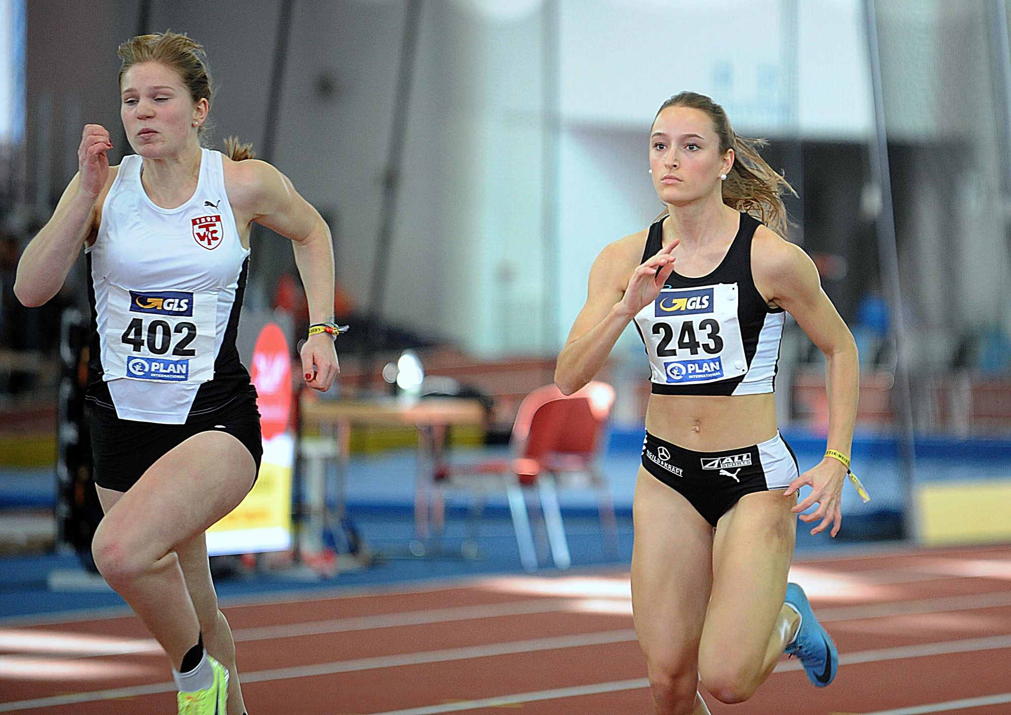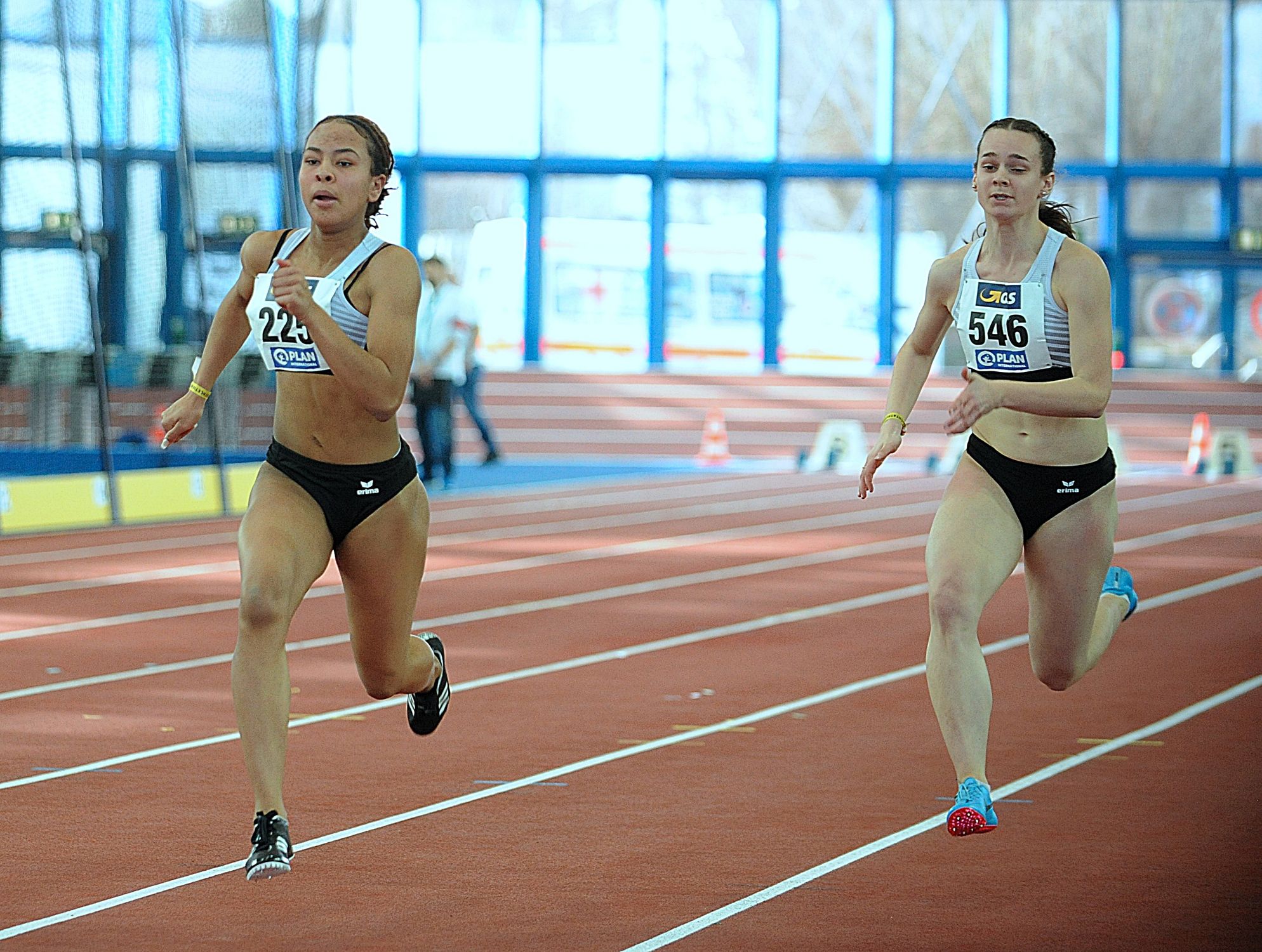 Drei Medaillen und sechs Endkampf-Platzierungen gab es für Leichtathletik-Nachwuchs aus Hessen bei den deutschen Hallen- und Winterwurf-Meisterschaften in Neubrandenburg. Als Favoritin auf den 60-Meter-Titel reiste Antonia Dellert (Sprintteam Wetzlar) an, hatte die Gymnasiastin aus Seligenstadt in dieser Saison doch schon hervorragende 7,40 Sekunden abgeliefert. Als Siegerin des ersten Vorlaufes stand nach 7,50 Sekunden auch das große „Q“ hinter Antonias Namen. Auch im dritten Zwischenlauf hatte Dellert mit 7,48 Sekunden die Nase vorne. Das Finale war dann ein ganz knappe Angelegenheit und die acht Sprinterinnen mussten nach dem Zieleinlauf auch eine ganze Weile warten, ehe das Zielfoto ausgewertet war. Talea Prepens (TV Cloppenburg) und Antonia Dellert bekamen beide 7,43 Sekunden zugewiesen. Doch bei der Betrachtung der dritten Stelle hinter dem Komma hatte die Hessin das Nachsehen gegenüber der Sprinterin aus Niedersachsen, die auf Platz eins gesetzt wurde. Die Bronzemedaille ging mit 7,45 Sekunden an Lokalmatadorin Cheyenne Kuhn vom SC Neubrandenburg.