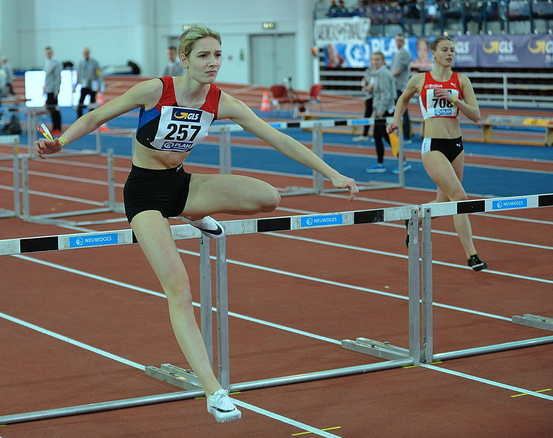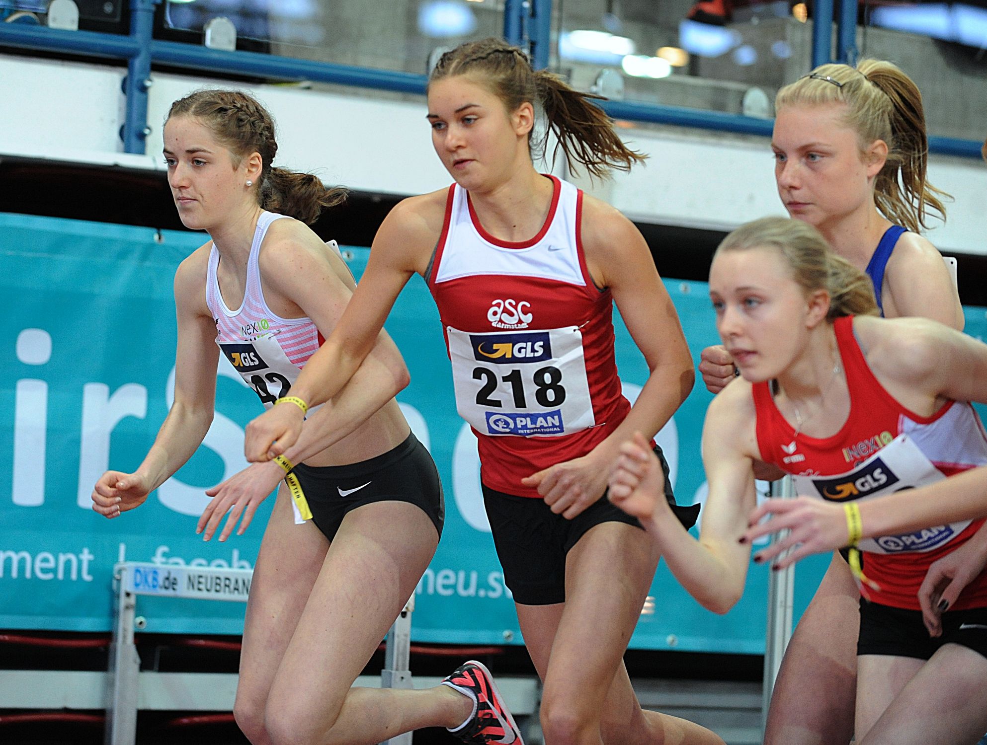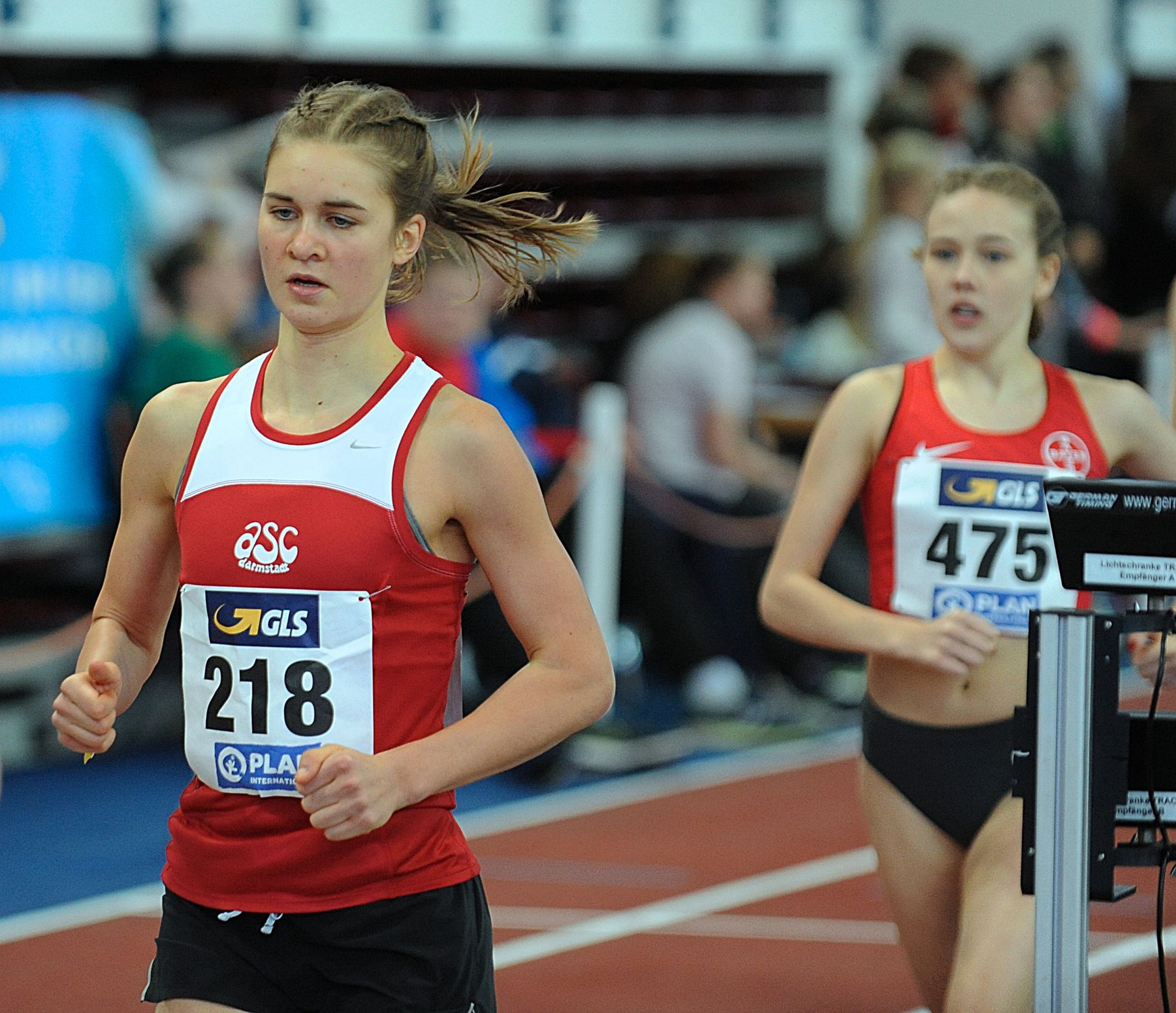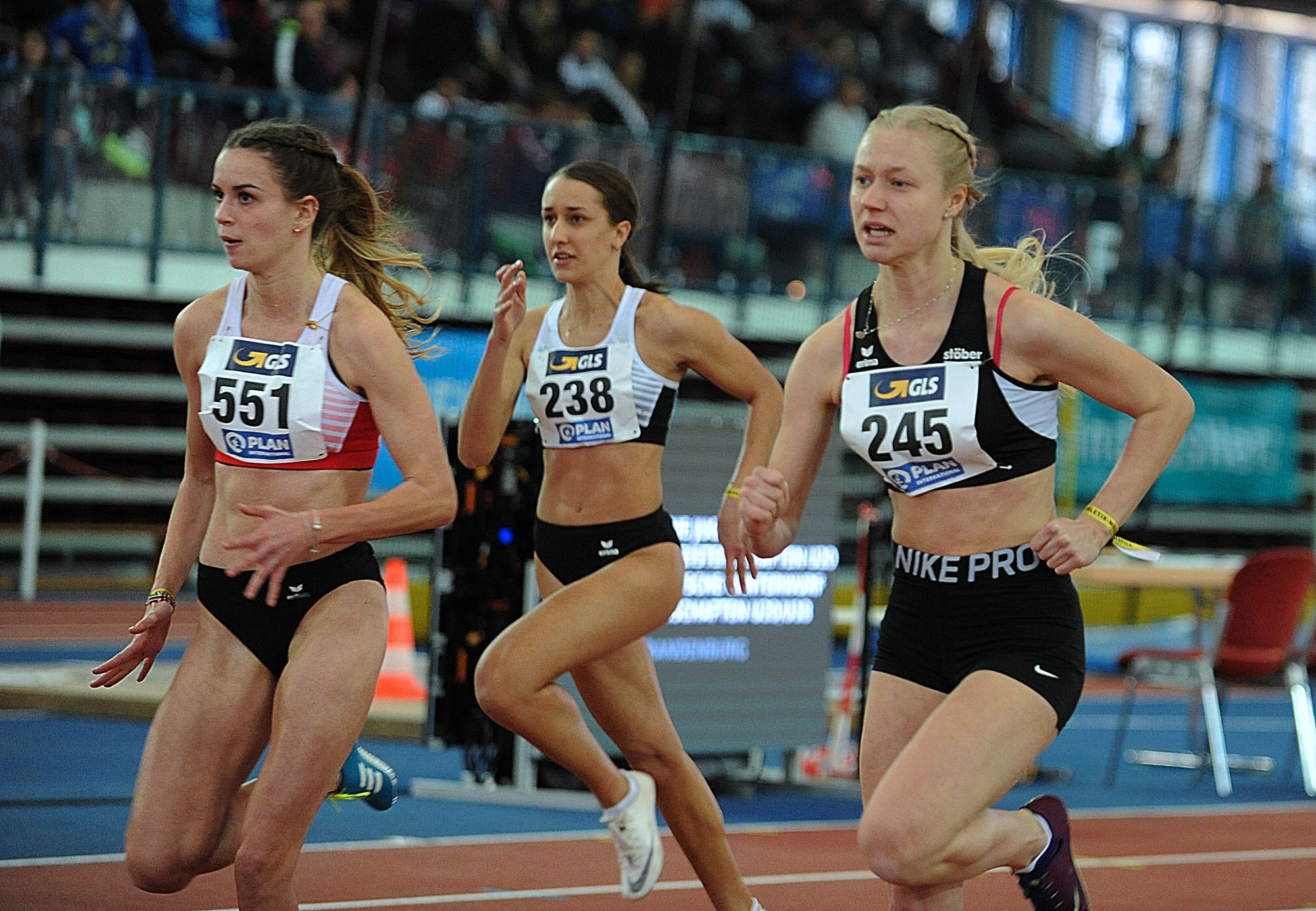 Eine tolle Vorstellung lieferte Marie Tertsch (ASC Darmstadt) über 3000 Meter. In einem ziemlich flott angelaufenen Rennen hielt sie sich taktisch klug zurück, rollte im Feld der Verfolgerinnen mit und überpacete nicht. Mit einen ganz starken letzten Runde schob sich Tertsch noch auf den fünften Platz vor und verbesserte mit 9:46,50 Minuten ihre Bestzeit erheblich. Über die 60 Meter Hürden ging mit Jessica Grimm (LG Reinhardswald/9,36 sec.), Clara Debus (Wiesbadener LV/9,02 sec.) und Vivien Suschlik (TV Reisen/9,18 sec.) ein Trio aus Hessen in die Startblöcke. Lediglich die Athletin aus der Landeshauptstadt zog in die nächste Runde ein und bestätigte hier mit 9,07 Sekunden ihre Zeit aus dem Vorlauf.