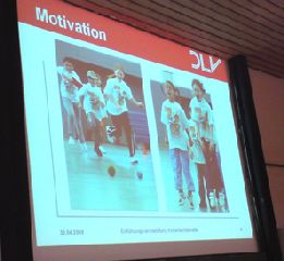 In diesem Zusammenhang referierte am 30. April und am 4. Mai Dominic Ullrich als Gastreferent des DLV über die Wege des Deutschen Leichtathletik Verbandes von der Kinderleichtathletik zur Talentförderung und stimmte die Studentinnen und Studenten in gekonnter Manier auf das Thema ein. Neben der Situationsanalyse Verein/Schule stellte Dominic Ullrich die DLV Konzeption „Leichtathletik für Kinder“ dar und motivierte die Zuhörer sogar zur praktischen Mitarbeit während der Vorlesung bei der Umsetzung von Bewegungsaufgaben, die an Kinder gestellt werden. Alle Teilnehmerinnen und Teilnehmer waren sich einig: „so macht Leichtathletik allen Spaß“. K. Neu-Müller