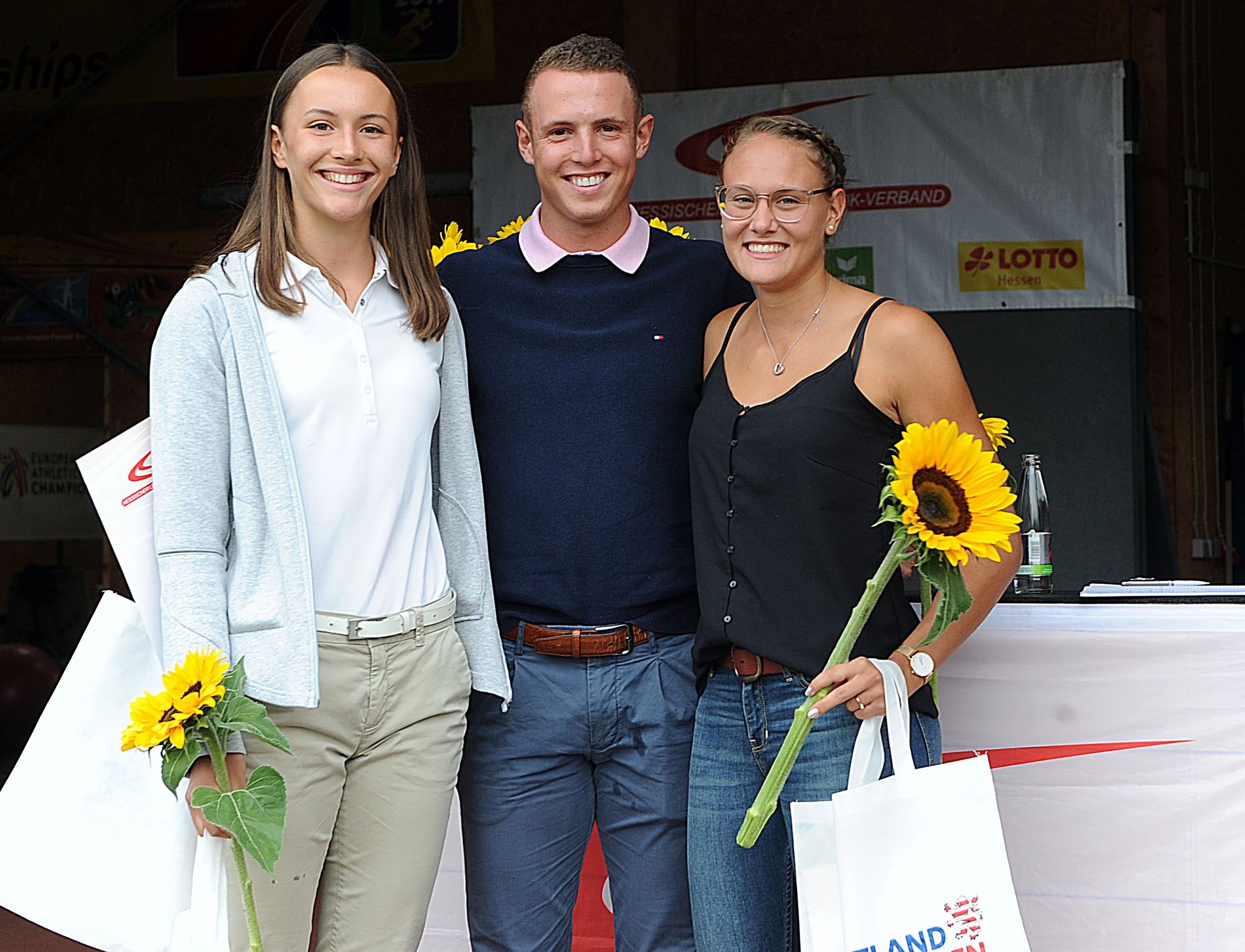 Aus dem „Sportland Hessen“ in die ganze Welt. Unter diesem Motto stand die Veranstaltung des hessischen Leichtathletik-Verbandes, bei der am Bundesstützpunkt und HLV-Leistungszentrum in der Hahnstraße die Teilnehmer an internationalen Einsätzen geehrt wurden. Ein Blick auf die Beflaggung am Gebäude zeigte, dass die hessischen Top-Athleten diverser Altersklassen quer durch Europa unterwegs waren oder zum Teil auch noch Einsätze jenseits des Kontinents vor sich haben. So gingen Läufer, Werfer, Springer und Mehrkämpfer in Gävle/SWE (EM der U23), Baku/AZB (European Youth Olympic Festival der U18), Zermatt/SUI (EM Berglauf), Boras/SWE (EM U20), Glasgow/GBR (Hallen-EM), Yokohama/JAP (Staffel-WM) oder Minsk/BLR (European Games) erfolgreich auf die Jagd nach Edelmetall, Sekunden oder Zentimetern. Ein kleiner Kreis aus Hessen hat als Jahreshöhepunkt noch die WM in Doha/QAT vor sich.