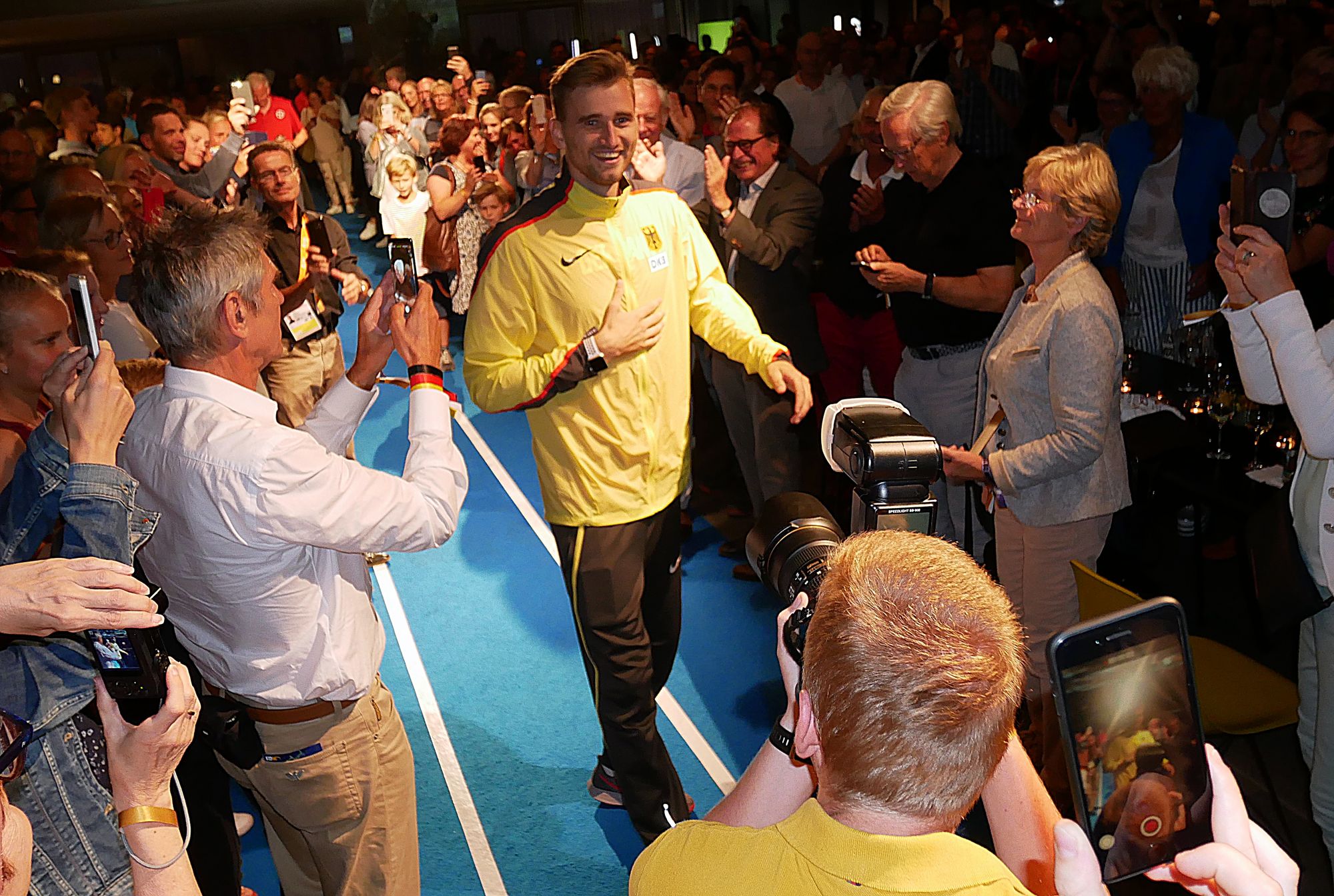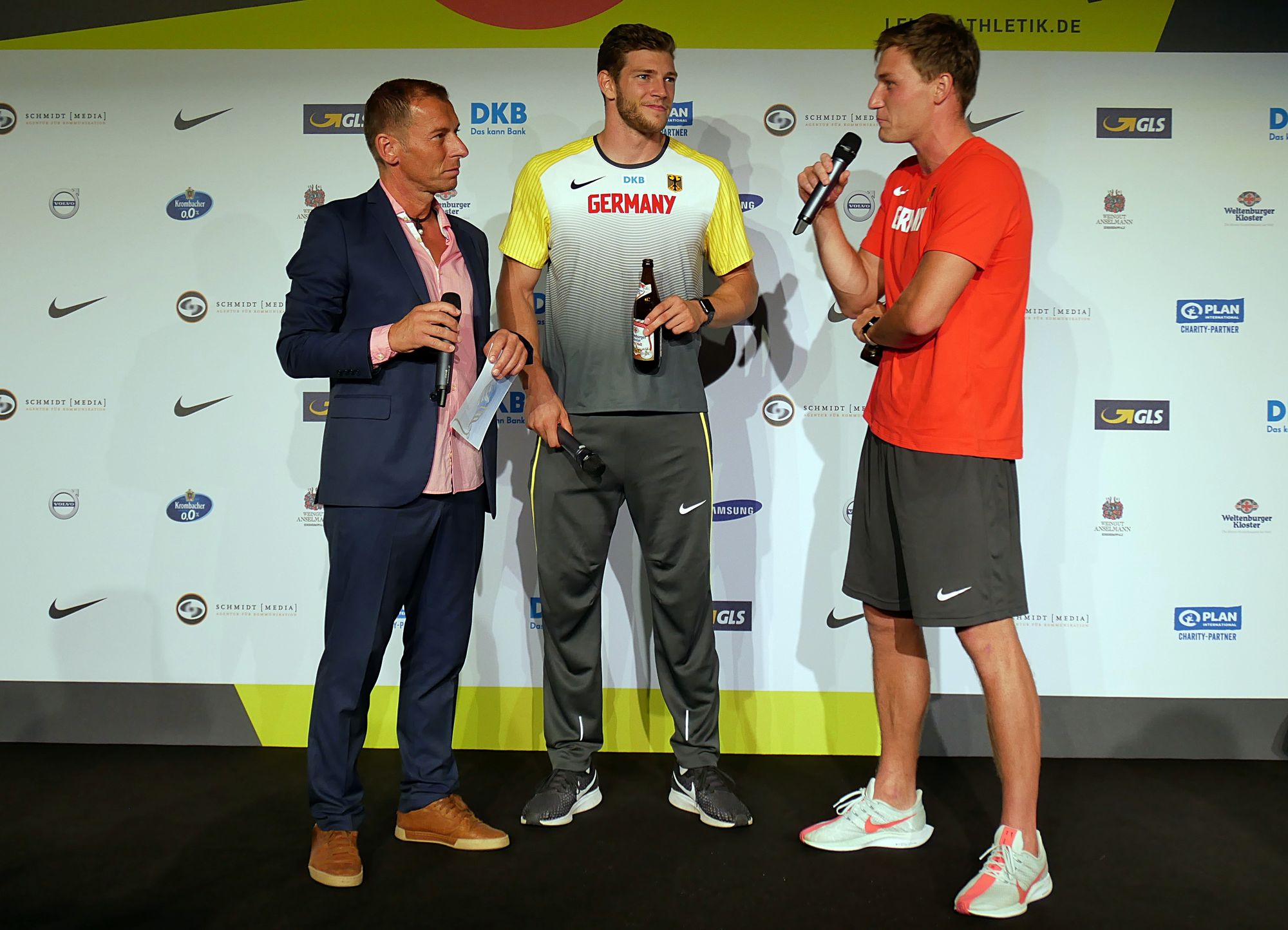 Am Samstag war letztmals Einlass. Natürlich waren die aktuellen Goldmedaillen-Gewinner Mateusz Przybylko (Hochsprung) und Malaika Mihambo (Weitsprung) sowie die Diskuswerferinnen Nadine Müller (Silber) Shanice Craft (Bronze) erschienen. Zum Finale gaben sich auch viele Ehemalige die Ehre: Heike Henkel und Sabine Braun, Norbert Dobeleit, Tanja Damaske, Heike Drechsler; gesehen wurden auch Zehnkampf-Europameister Arthur Abele (mit privatem Fanclub), Julia und Robert Harting, Sabrina Mockenhaupt mit Freund, der Olympiadritte Daniel Jasinski, der Hamburger Marathon-Renndirektor Frank Thaleiser, Franz-Josef Kemper vom Leichtathletik-Förderverein Hessen mit Gattin Sylvia Schenk und, und. 200, vielleicht 300 Menschen mögen es jeden Abend gewesen sein, die bei Speis und Trank und Musik zueinander fanden. Europäische Honoratioren inbegriffen.