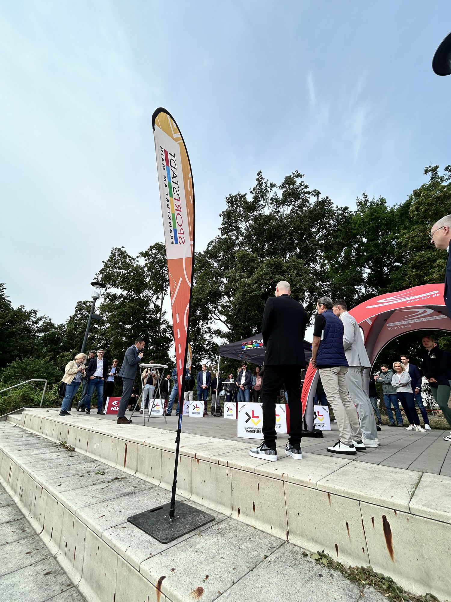 Gemeinsam mit Vertreter:innen der Stadt, Oberbürgermeister Mike Josef, Vertreter:innen des Landes und dem hessischen Sport inklusive Athlet:innen wurde am Dienstagvormittag der Bundesstützpunkt an der Hahnstraße eröffnet.