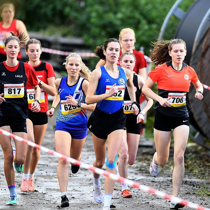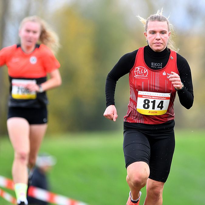 Im Hauptlauf der Frauen mussten drei Runden über 4200 Meter absolviert werden. Gleich nach dem Start machte Nina Engelhard (PSV Grün-Weiß Kassel/W20) mächtig Druck und lief vorne im Wind. In ihrem Schlepptau hatten sich mit Lisa Oed und Sina Moira Wiedmann zwei Athletinnen im weinroten Trikot des Königsteiner LV (ebenfalls W20) einsortiert. Die Favoritin aus Nordhessen ließ sich auf den drei zu laufenden Runden jedoch nicht die Butter vom Brot nehmen und konnte mit 14:37 Minuten einen Start-Ziel-Sieg feiern. Dahinter hatte Lisa Oed einen starken Auftritt. Bei ihrer „Comeback-Tour“ nach diversen Verletzungen, es war erst das fünfte Rennen seit Spätsommer, gefiel die Medizinstudentin mit 15:16 Minuten als hessische Vize-Meisterin. Eva Marie Sulzer (Eintracht Frankfurt/15:56 min./W20) komplettierte das Podium bei den Frauen. Als es in die dritte Runde ging, lag Sina Moira Wiedmann (KLV) noch auf dem Bronzerang, doch die Bahnlauf-Spezialistin musste dann etwas Federn lassen und wurde mit 16:13 Gesamtvierte. Ines Hartjes (LG/VfL SSG Bensheim/5. Gesamt) dominierte mit 16:18 Minuten die Altersklasse W45. Für Nessrin Amerschläger (SSC Hanau-Rodenbach/5. W20) und Lena Erja Müller (TG Melbach/6. W20) war die letzten Titelkämpfe auf Landesebene 16:18 bzw. 16:30 Minuten beendet.