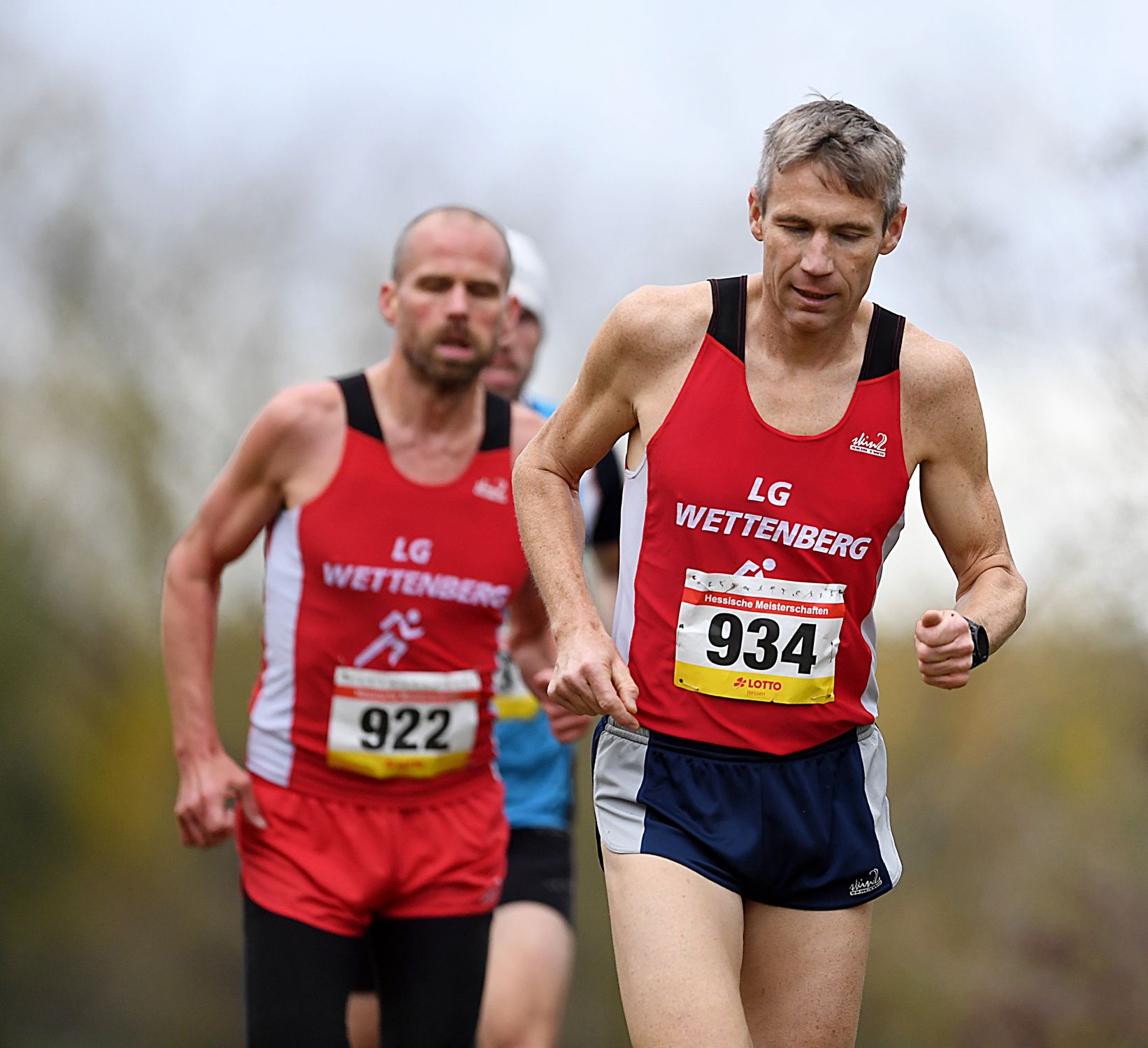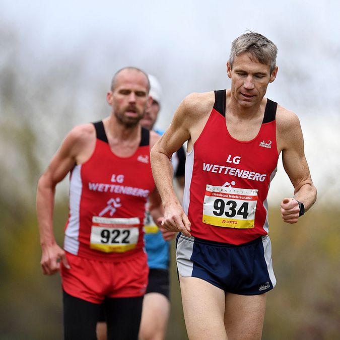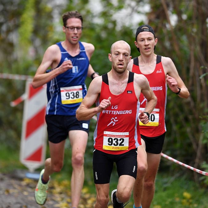Auf der Männer-Langstrecke hatte sich schnell ein Führungs-Trio gebildet, das auf den kräftezehrenden 7000 Metern fürs Tempo sorgte. Robert Meier (LG Wettenberg), Nils Bergmann (TV Waldstraße Wiesbaden) und Willi Paufler (LG Wettenberg) wechselten sich an der Spitze ab. Auf der vorletzten Runde startete Nils Bergmann eine Attacke, konnte sich von den beiden Wettenbergern jedoch nicht richtig lösen. Am Ende hatte Robert Meier (M20) die „besten Beine“ und lief nach 23:41 Minuten über die Ziellinie. Neun Sekunden später folgte Nils Bergmann (auch M20). Der M30er Willi Paufler (ebenfalls LGW) komplettierte in 24:02 Minuten das Top-Trio. Moritz Lange (ASC Darmstadt) hatte mit 24:30 Minuten dann schon ein wenig Rückstand, hatte aber in der M40 die Nase vorne. Wenig später hatte es auch Felix Thum (LC Diabü Eschenburg) geschafft, der bei den M35ern den Hessentitel holte. Mit Florian Lecht stürmte nach 24:37 Minuten (2. M30) 24:47 Minuten ein weiterer Läufer im roten Trikot der LG Wettenberg ins Ziel. Für die 24:52 Minuten von Lars Siegmund (ASC Darmstadt) gab es Hessen-Gold in der Altersklasse M45.