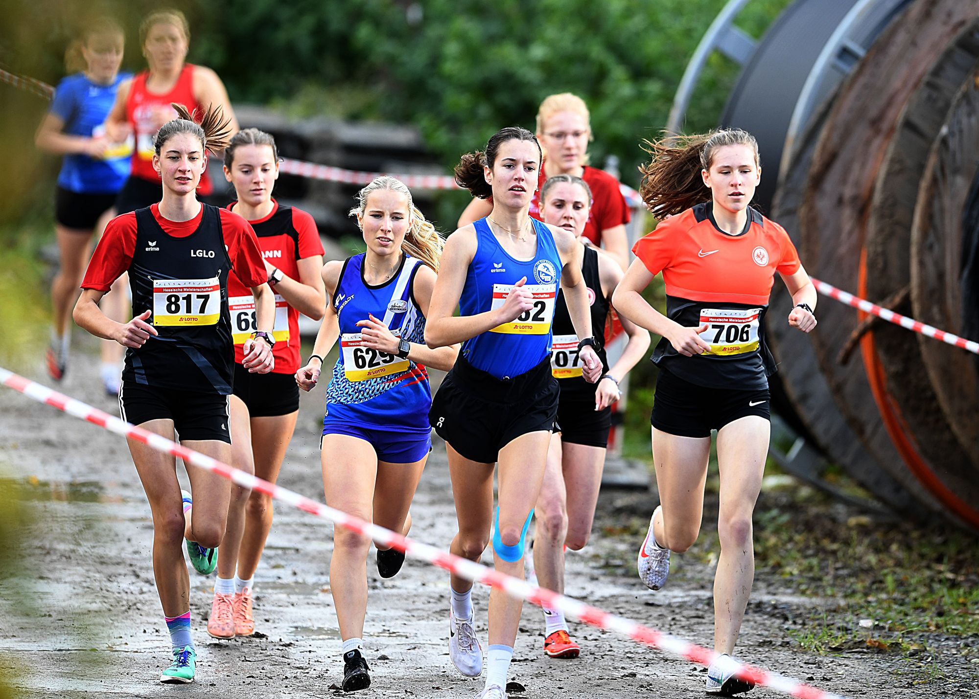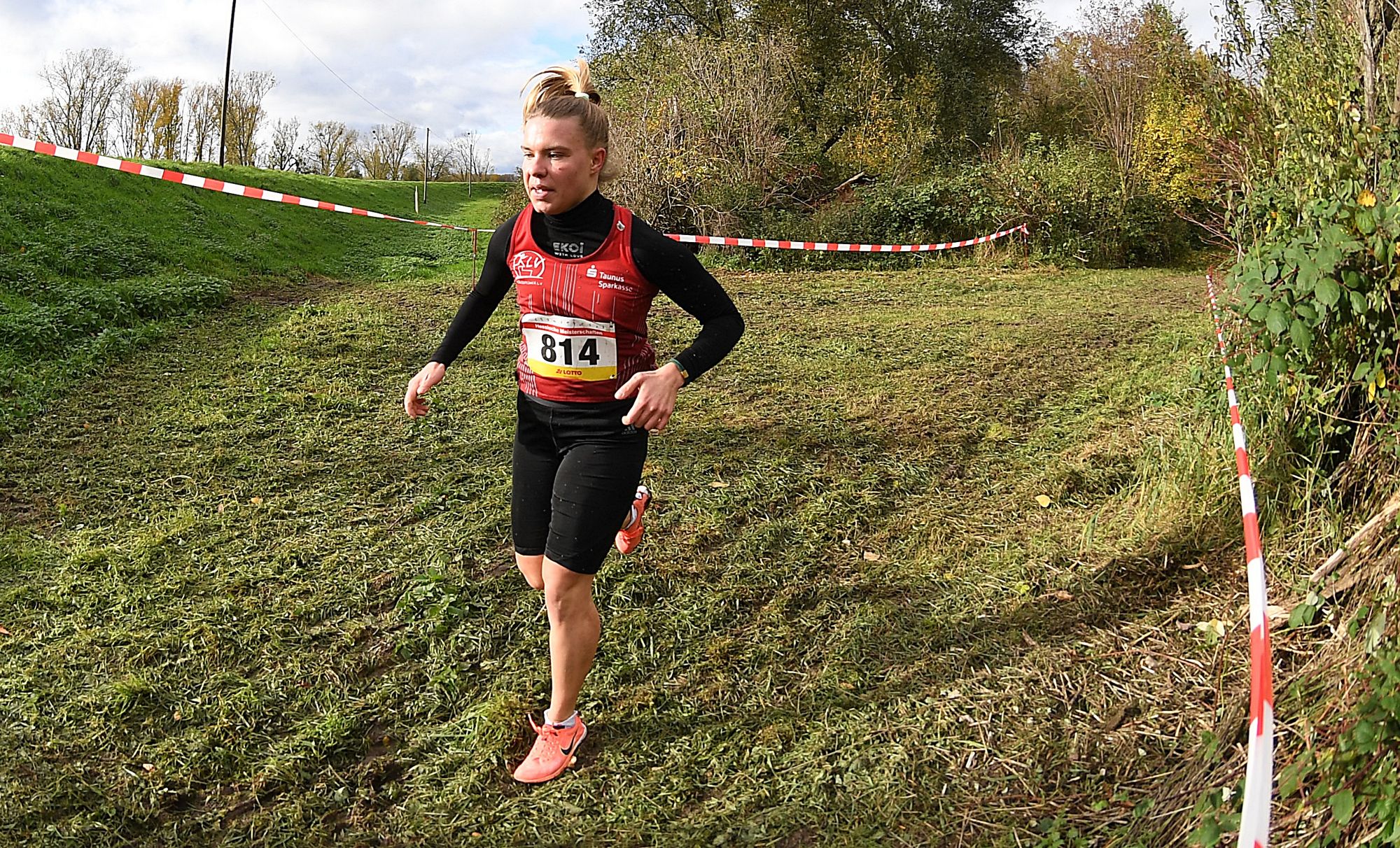 Lange Nägel in den Spikes waren eigentlich Pflicht, um bei den hessischen Crosslauf-Meisterschaften in Trebur gut über den anspruchsvollen Parcours zu kommen. Die intensiven Regenfälle der letzten Tage hatten den Wiesenuntergrung arg aufgeweicht. Besonders an den Anstiegen und Bergabpassagen der Hochwasserwälle, die auf jeder Runde bewältigt werden mussten, war ein guter Grip unerlässlich, um nicht zu stürzen.