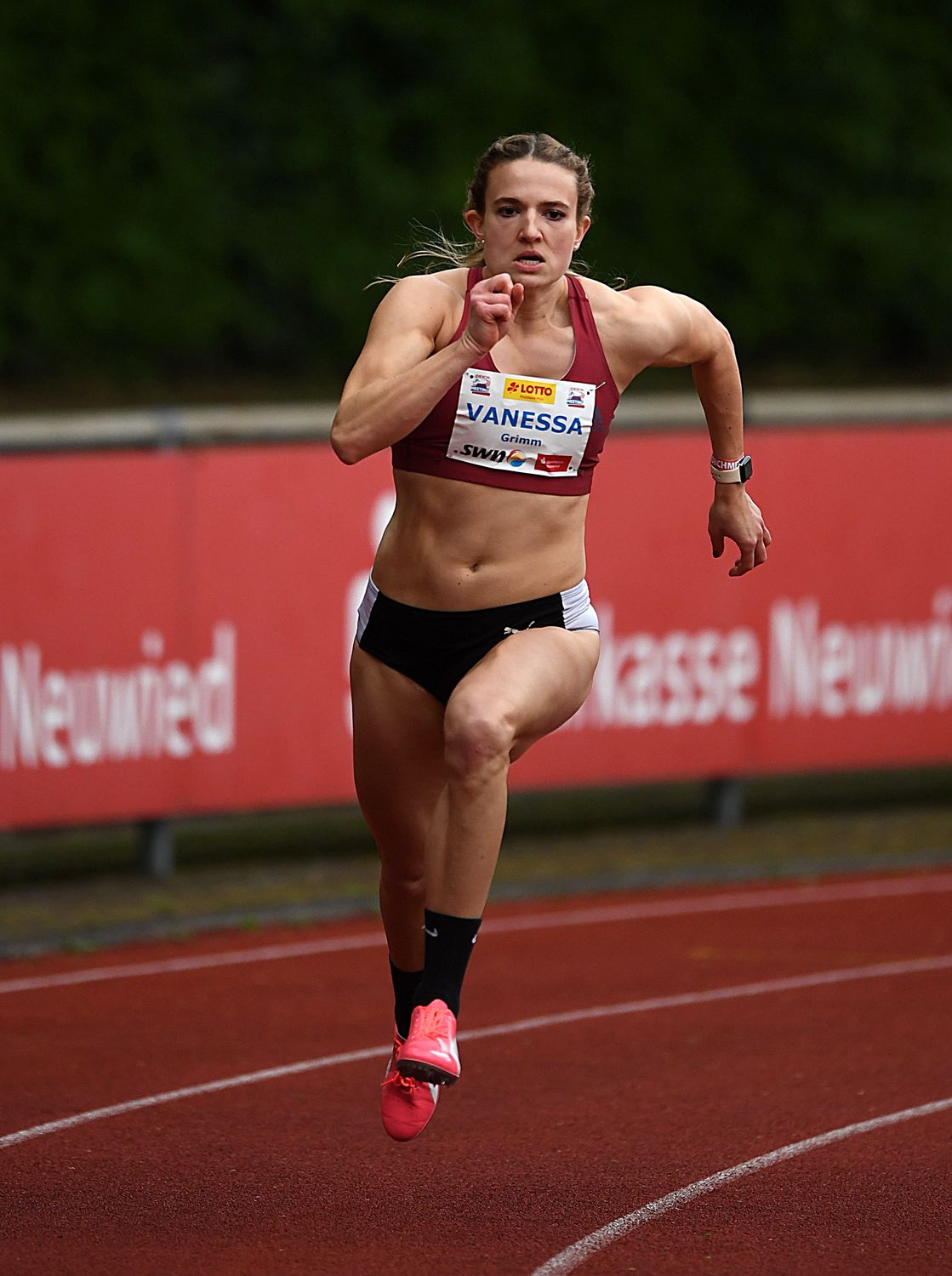 Einen soliden Vierkampf lieferte Vanessa Grimm (Königsteiner LV) ab, die bei recht frischen Temperaturen knapp über zehn Grad mit 14,11 Sekunden für die 100 Meter Hürden in ihren Wettkampf einstieg. Das bedeutete Rang sechs unter zehn Starterinnen. Gerne hätte die Bundeskaderathletin zum Auftakt eine Zeit mit einer „13“ vor dem Komma stehen gehabt - was bei ihr ja auch schon mehrfach geklappt hat. Dies gelang in Neuwied jedoch nur Louisa Grauvogel (TSV Bayer 04 Leverkusen/13,58 sec.), Isabel Mayer (LG Teils Finanz Regensburg/13,62 sec.) sowie Sophie Hamann (TuS Metzingen/13,75 sec.). Weiter ging es mit dem Hochsprung. Hier teilte sich die KLVlerin mit überquerten 1,73 Metern zusammen mit Trainingskollegin Jenna Fee Feyerabend (TV Groß-Gerau) und Carolin Schäfer (Eintracht Frankfurt) den zweiten Platz. Der Disziplinsieg ging mit starken 1,82 Meter an Sophie Hamann (TuS Metzingen/PB). „Die Höhe geht in Ordnung und liegt in Schlagweite zu meiner Bestmarke. Hier ging es in erster Linie darum, meinen Anlauf zu festigen. Das hat auch gut geklappt“, berichtet Vanessa. Im folgenden Speerwerfen knackten nur vier Athletinnen die 40-Meter-Marke. Angeführt wurde dieses Quartett von Carolin Schäfer (45,96 m), gefolgt von Anna Maiwald (Leverkusen) mit 43,97 Meter. Deren Vereinskollegin Louisa Grauvogel setzte sich mit lediglich sechs Zentimetern Vorsprung gegen Vanessa Grimm durch, die 41,34 Meter markierte. Bei den abschließenden 150 Meter wurde der Schützling von HLV-Coach Philipp Schlesinger mit 18,48 Sekunden (6.) gestoppt. Für Carolin Schäfer zeigte die Stoppuhr 18,13 Sekunden (3.) an.