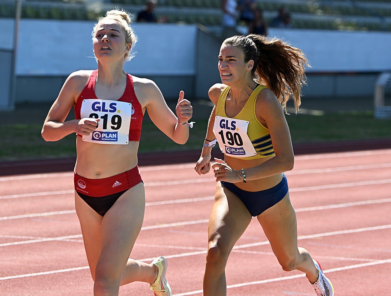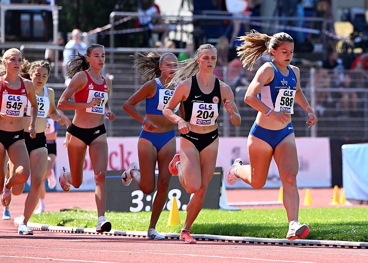 Bei den 800 Metern drückte Favoritin Lucia Sturm (TSV Moselfeuer Lehmen) aufs Tempo und lief das Rennen von der Spitze weg im Alleingang mit guten 2:03,51 Minuten „nach Hause“. Dahinter sortierte sich Sophia Volkmer (TV Wetzlar) mit 2:05,86 Minuten ein, die erfolgreich die Attacke von Alina Schönherr (LSV Schmölln/2:06,70 min.) abwehren konnte. Lara Tortell (Athletics Team Karben) kam als Siebte mit 2:09,57 Minuten nicht ganz an ihre Zeit aus dem Vorlauf ran. Die 1500 Meter wurden nach 4:24,69 Minuten eine Beute von Verena Meisl (LG Olympia Dortmund). Svenja Sommer (Eintracht Frankfurt) musste als Fünfte mit 4:31,98 Minuten zufrieden sein.